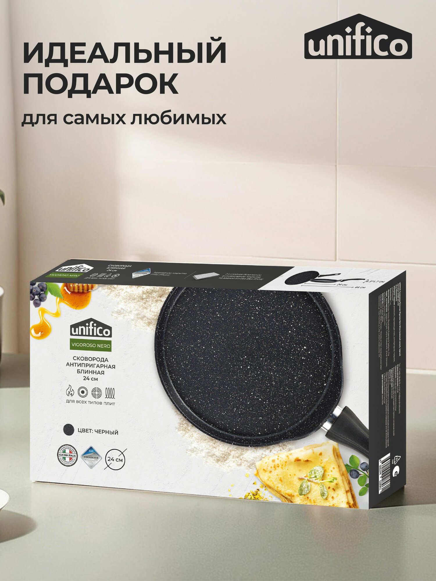Сковорода блинная 24 см для индукционной плиты UNIFICO Vigoroso Nero интересное: