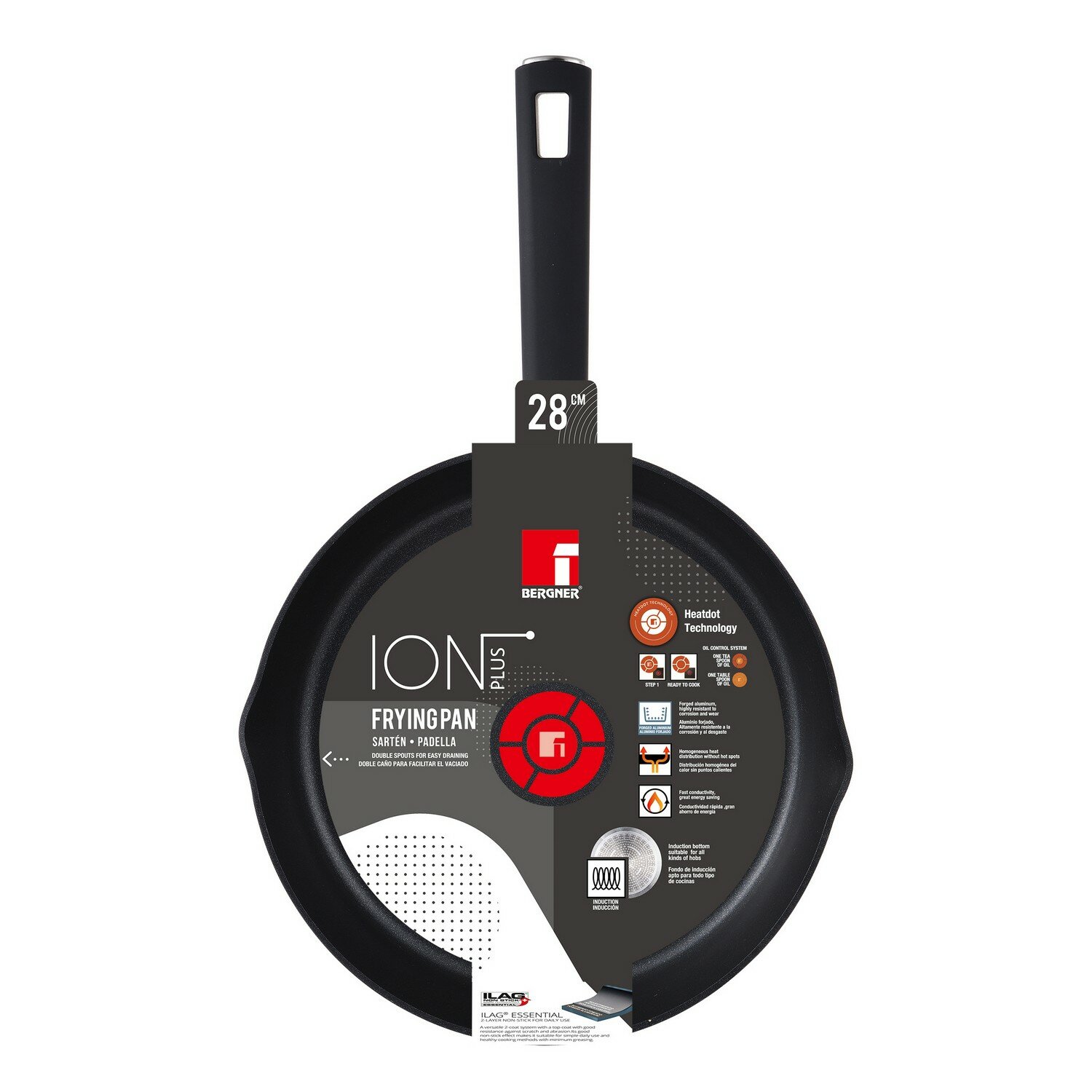 Купить Сковорода алюминиевая, без крышки, прорезиненная ручка, 28 см, BERGNER