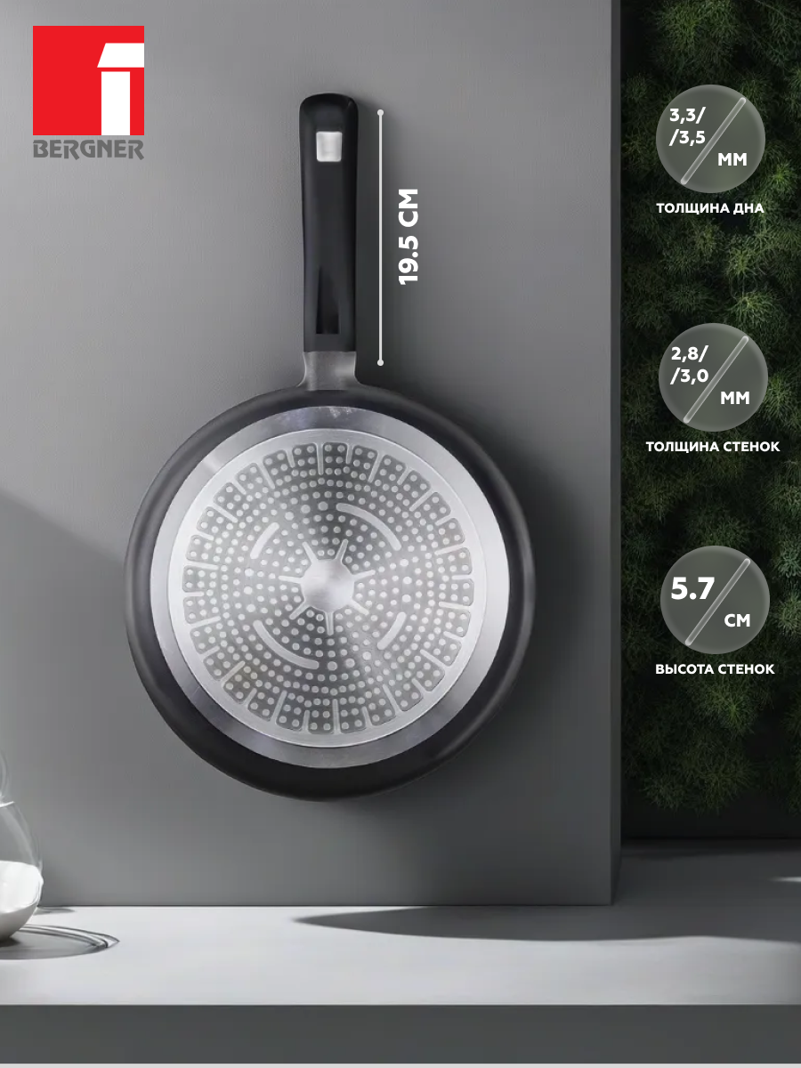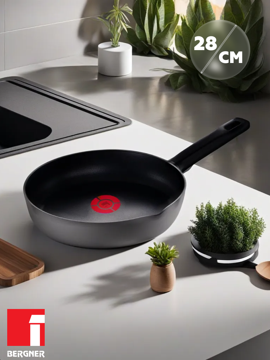 Сковорода алюминиевая, без крышки, прорезиненная ручка, 28 см, BERGNER интересное:
