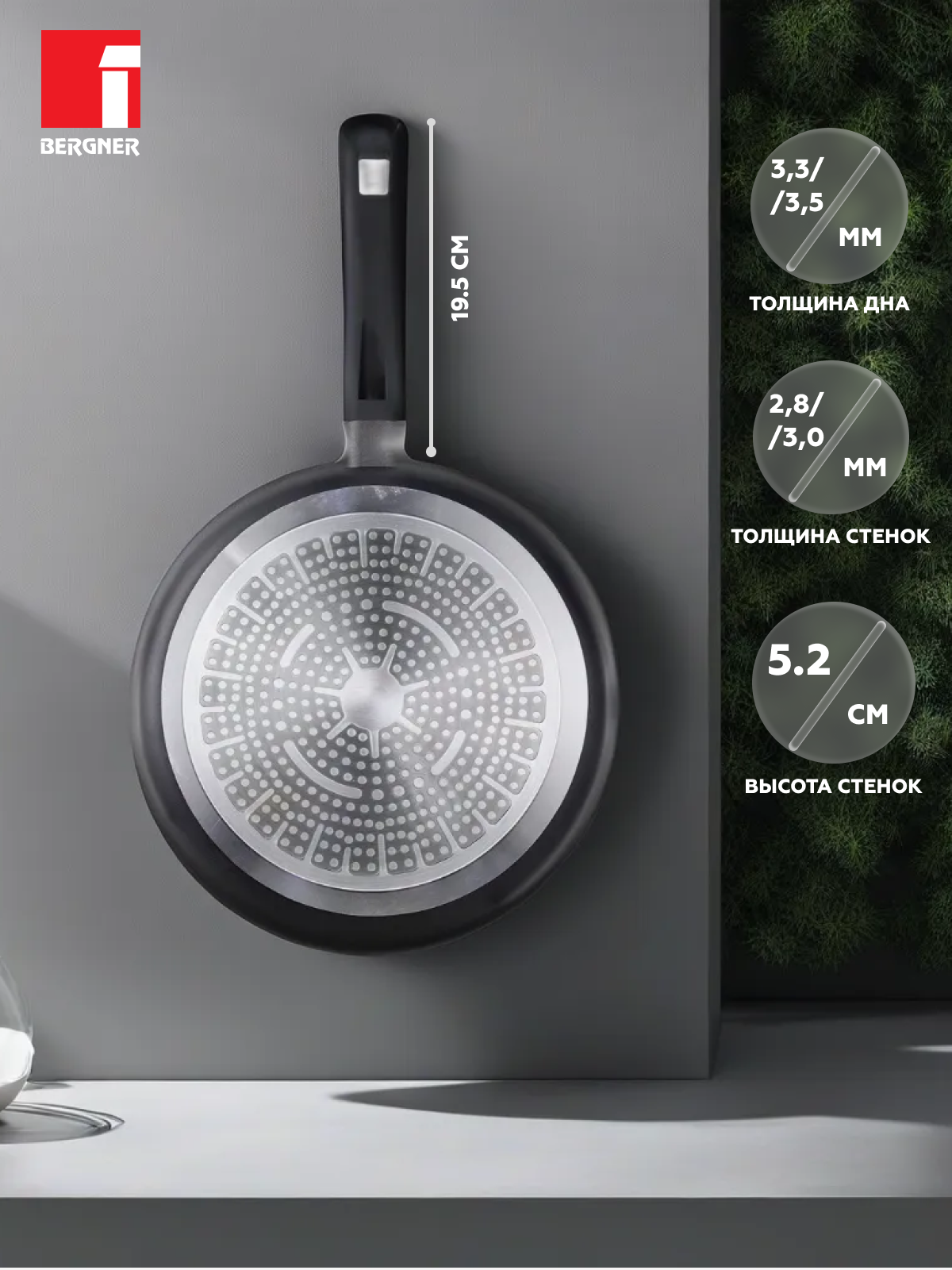 Сковорода алюминиевая, без крышки, прорезиненная ручка, 24 см, BERGNER интересное: