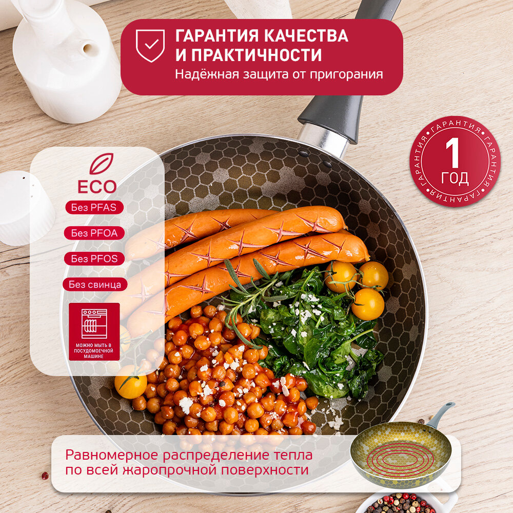 Сковорода 26 см без крышки с антипригарным покрытием, Зеленая линия