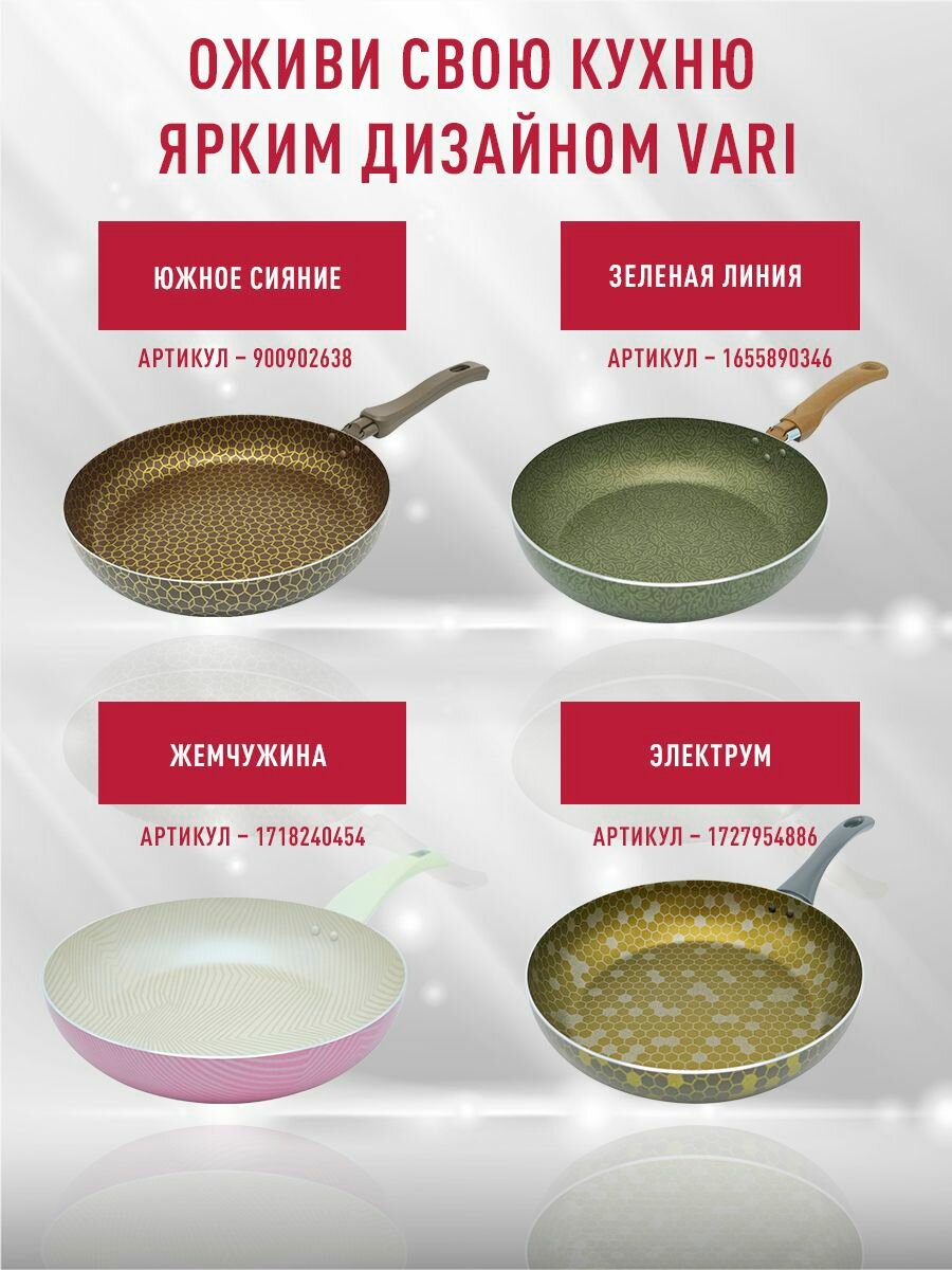 Сковорода 24 см без крышки с антипригарным покрытием, Зеленая линия
