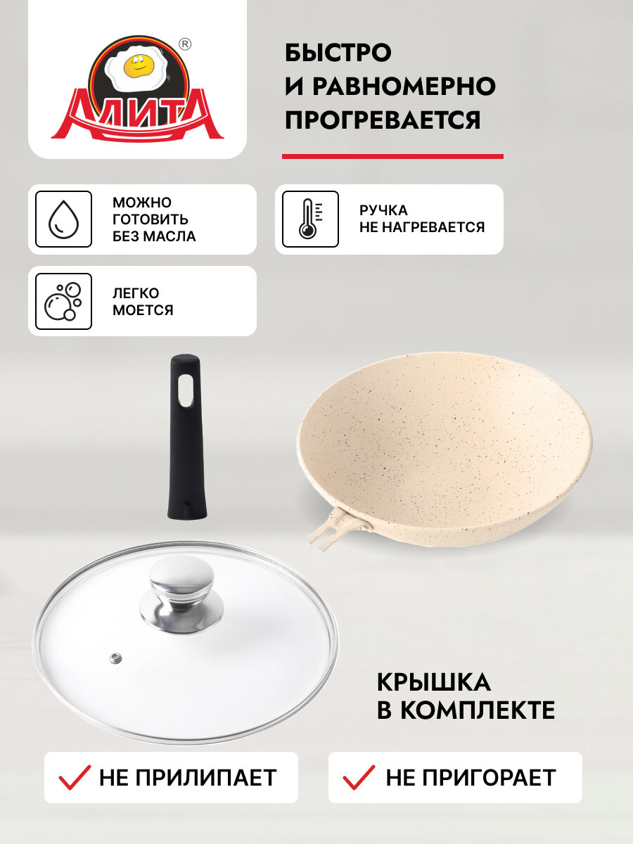 Сковорода вок с крышкой 24 см со съемной ручкой глубокая с толстым дном, Сакура интересное: