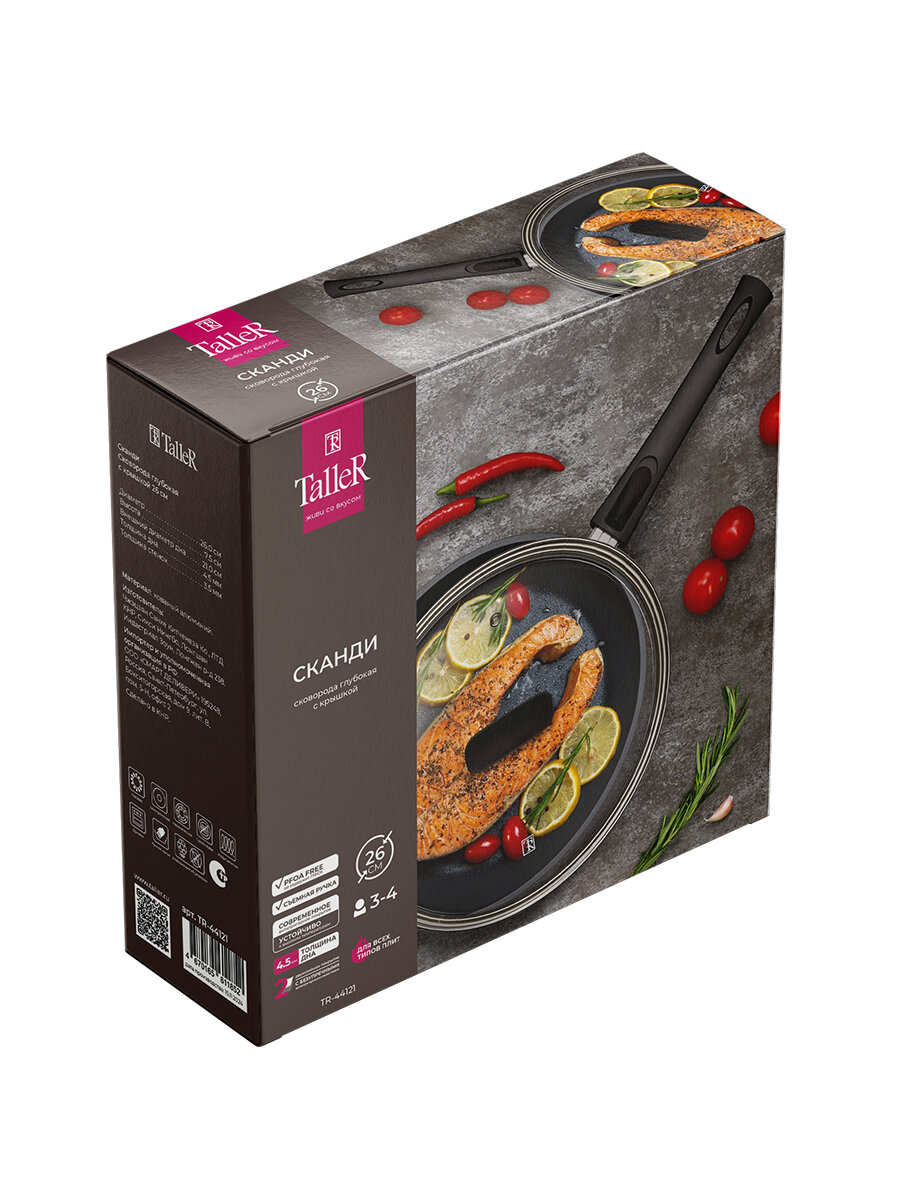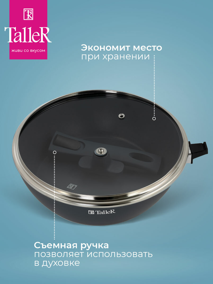 Сковорода глубокая антипригарная с крышкой и съемной ручкой TalleR TR-44121 26 см интересное:
