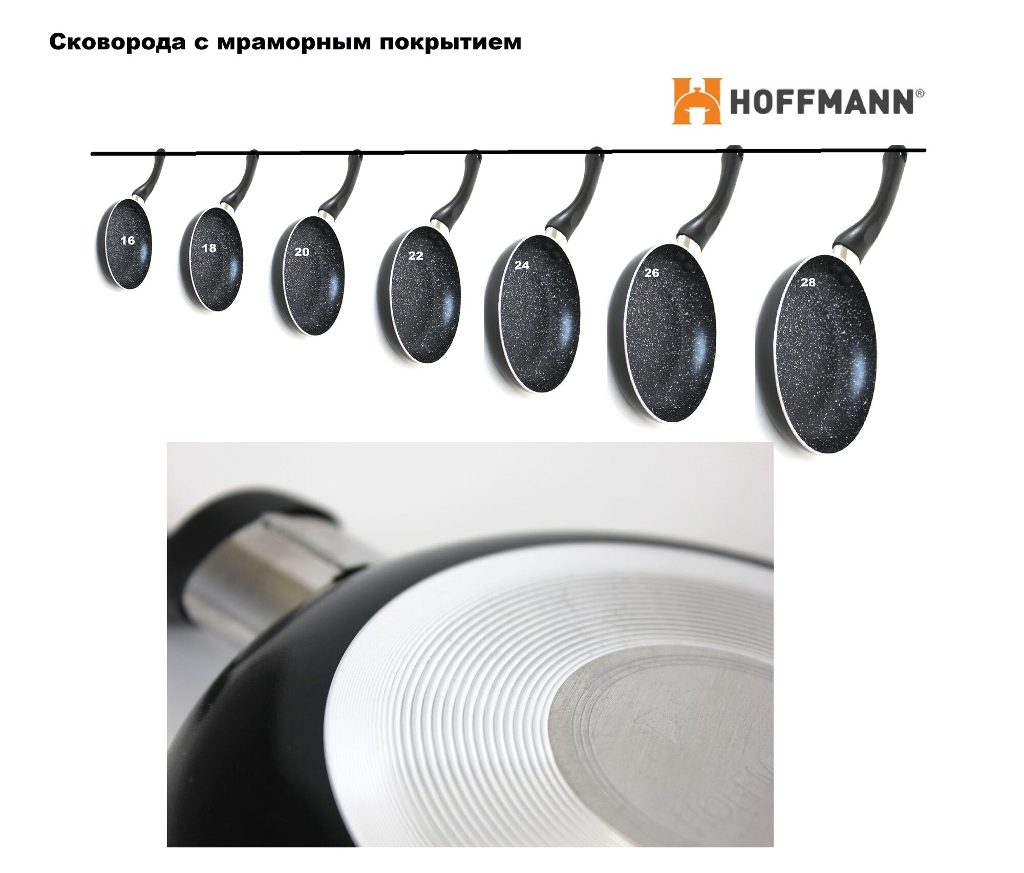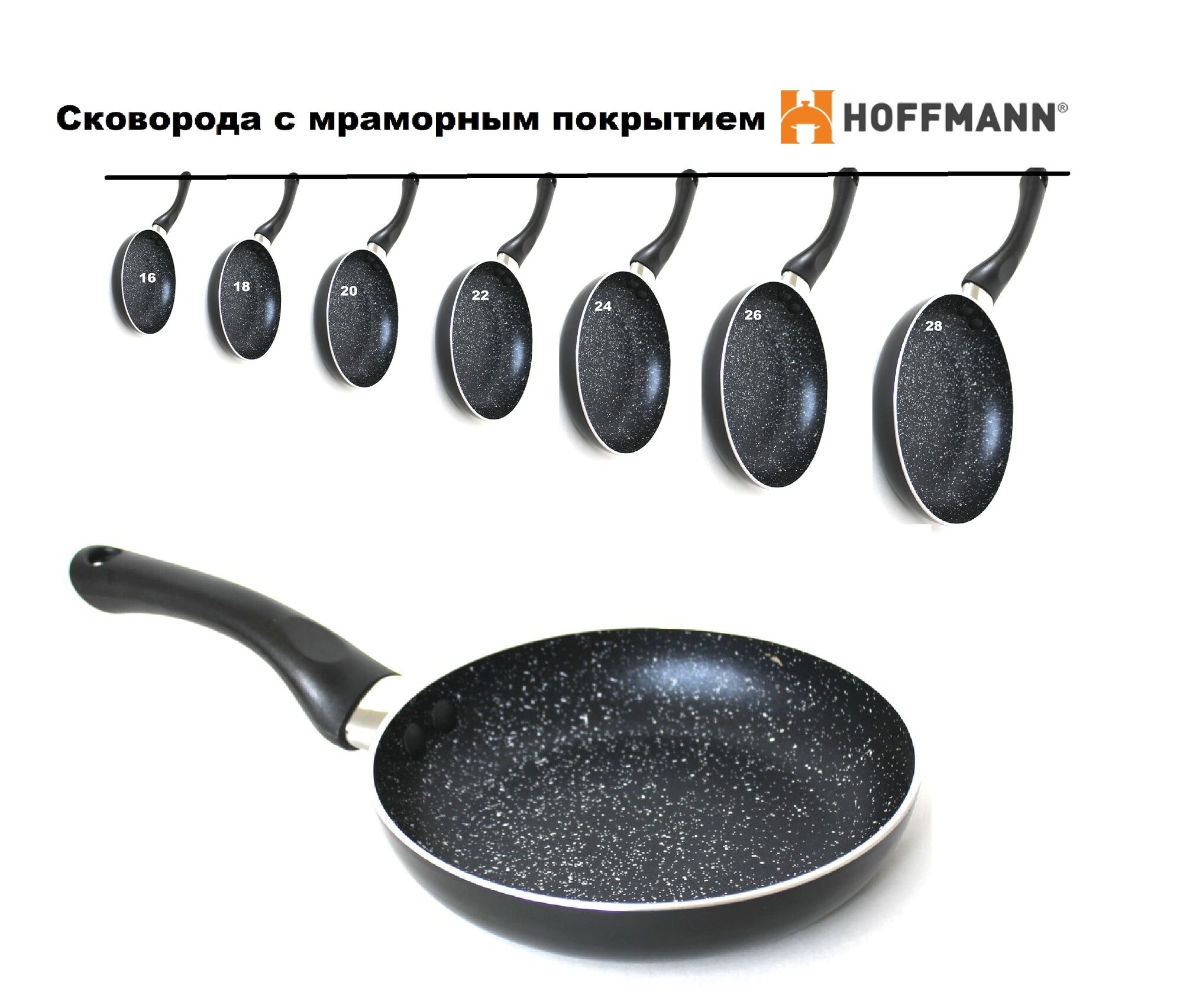Сковорода Hoffman HM 7918, алюминий, антипригарное мраморное покрытие, 18см интересное: