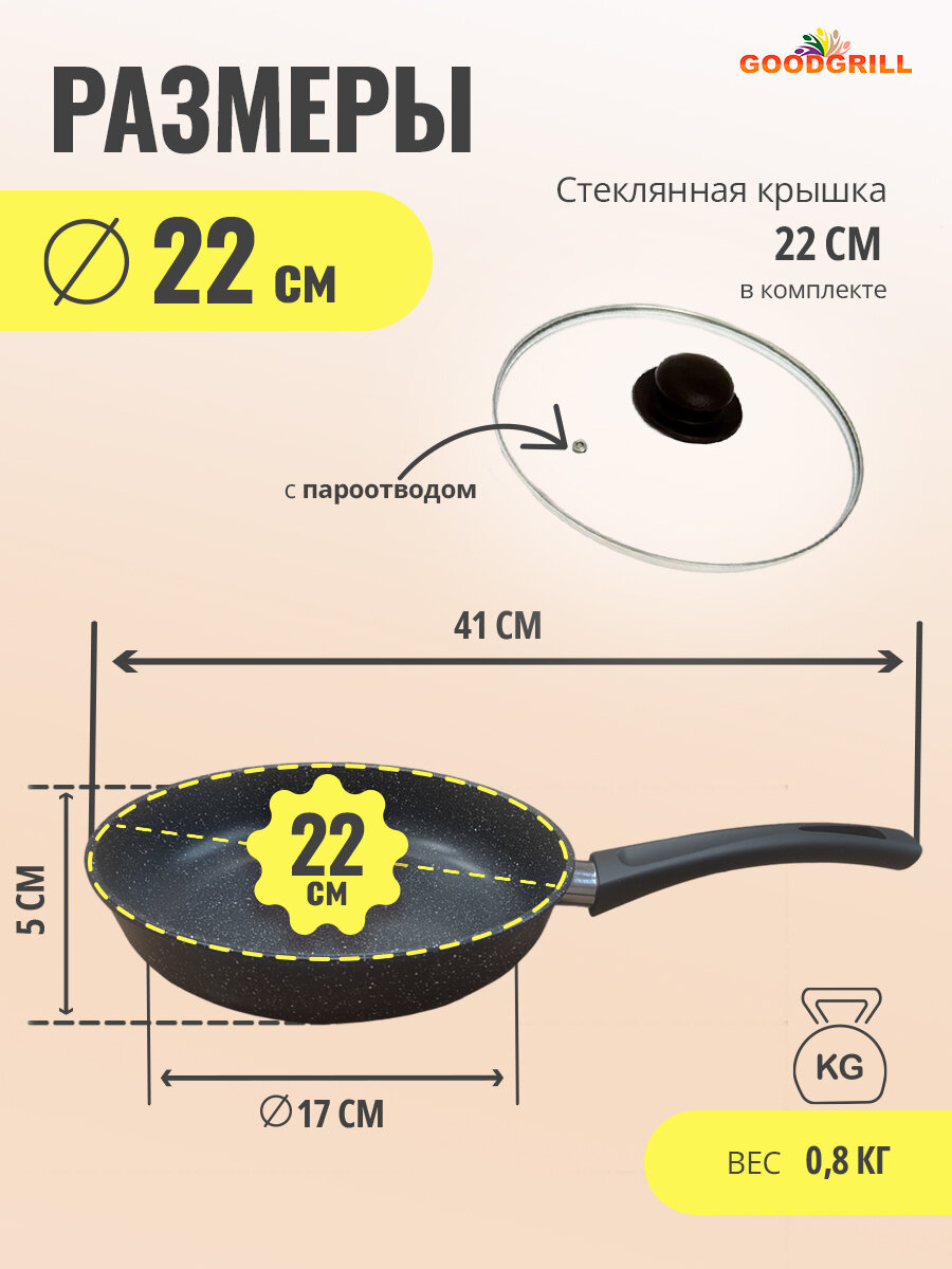 Сковорода с крышкой толстостенная из литого алюминия 22 см с трехслойным антипригарным покрытием GOODGRILL интересное: