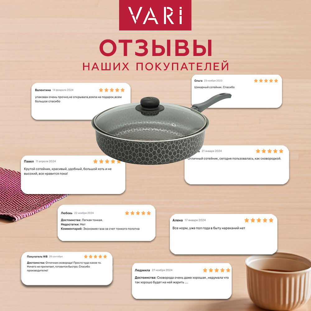 Ниже Вы можете прочитать отзывы на Сотейник с антипригарным покрытием высокий борт Северное сияние, D26 см с крышкой, ознакомится с подробными характеристиками, посмотреть интересные обзоры и фотографии на Сотейник с антипригарным покрытием высокий борт Северное сияние, D26 см с крышкой.