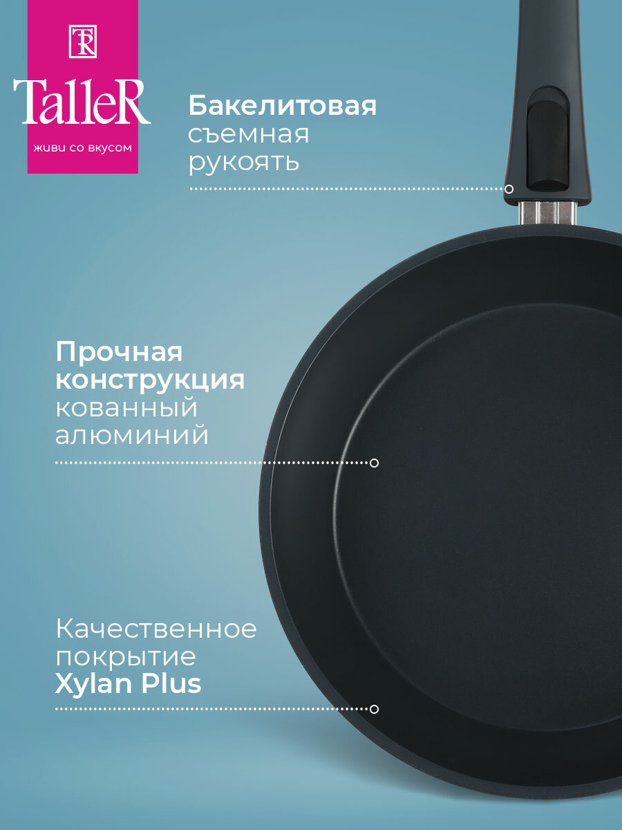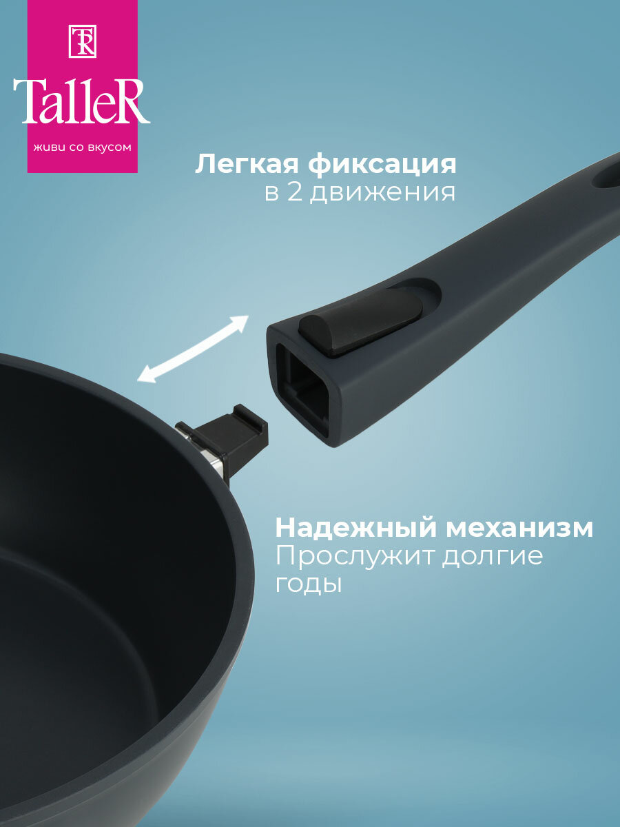Сковорода глубокая антипригарная с крышкой и съемной ручкой TalleR TR-44120 24 см интересное: