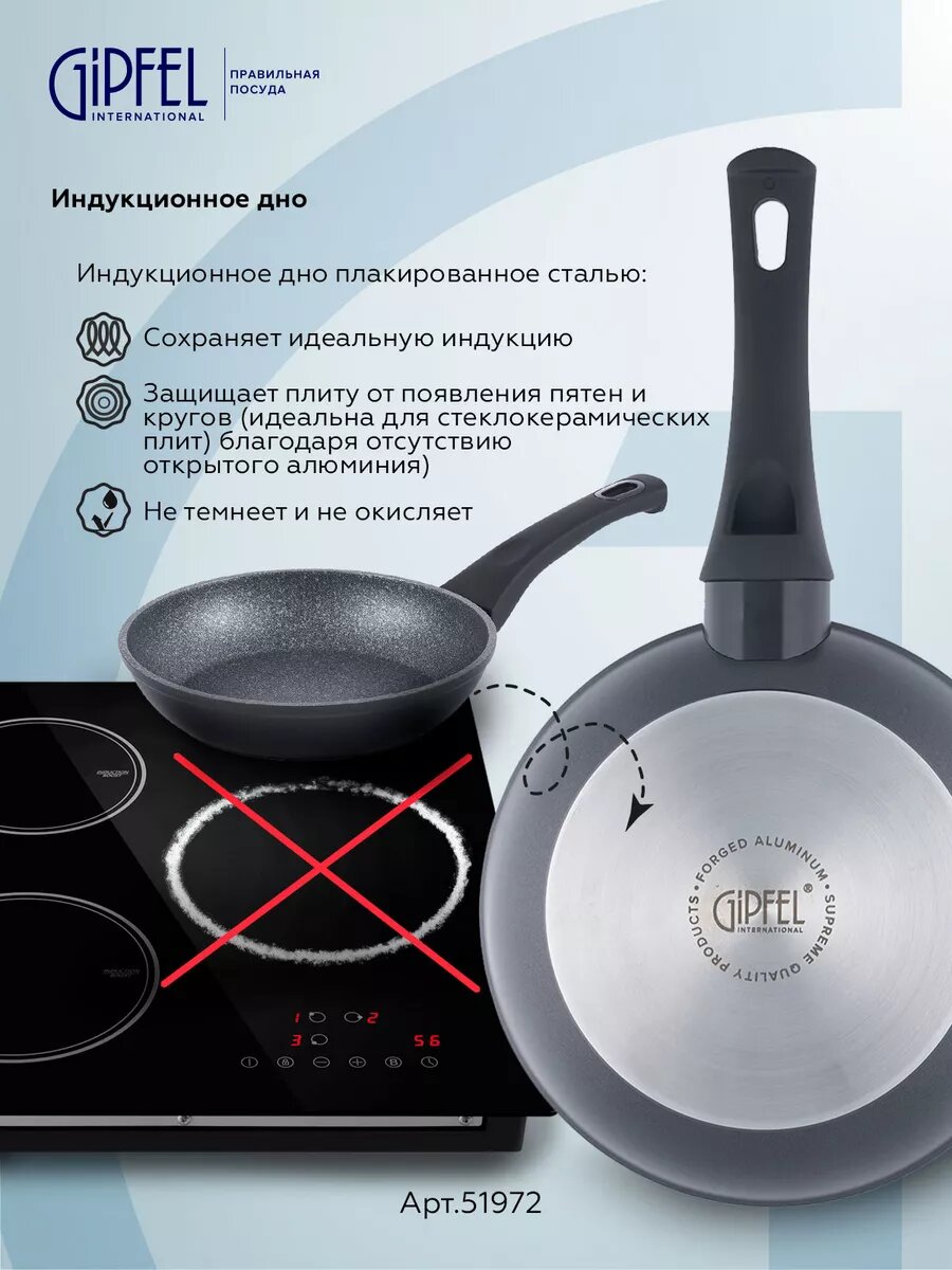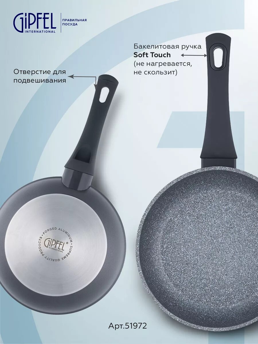 Алюминиевая сковорода Gipfel Optima 51972 20 см черный/серый интересное: