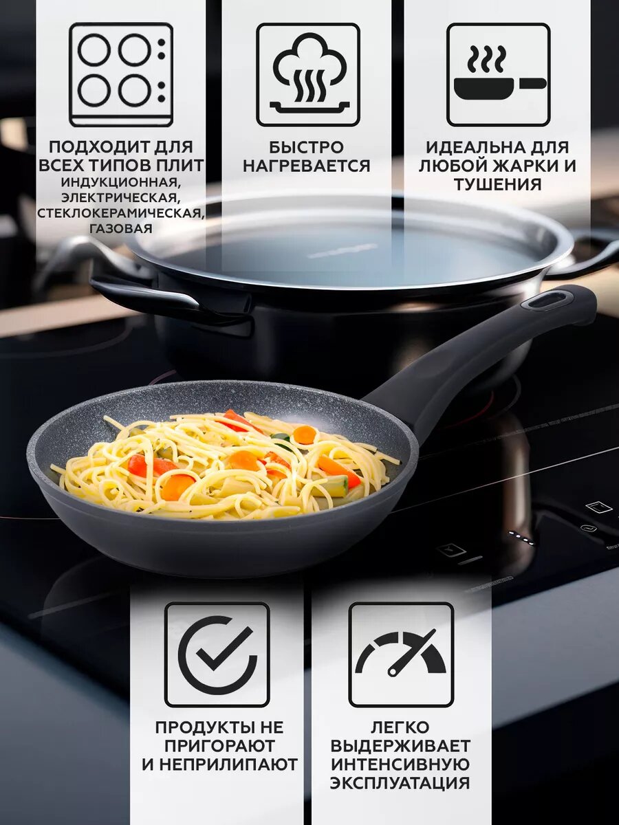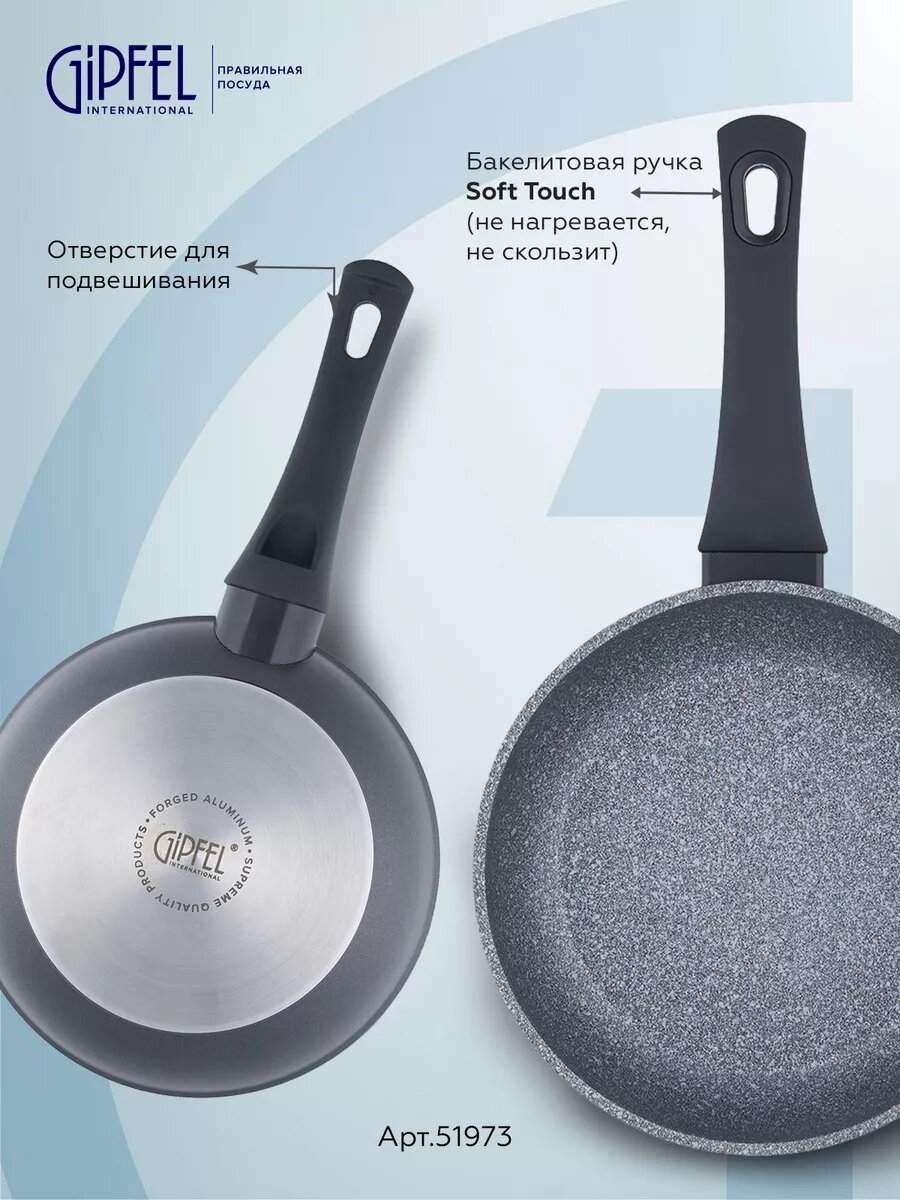 Алюминиевая сковорода Gipfel Optima 51973 24 см черный/серый интересное: