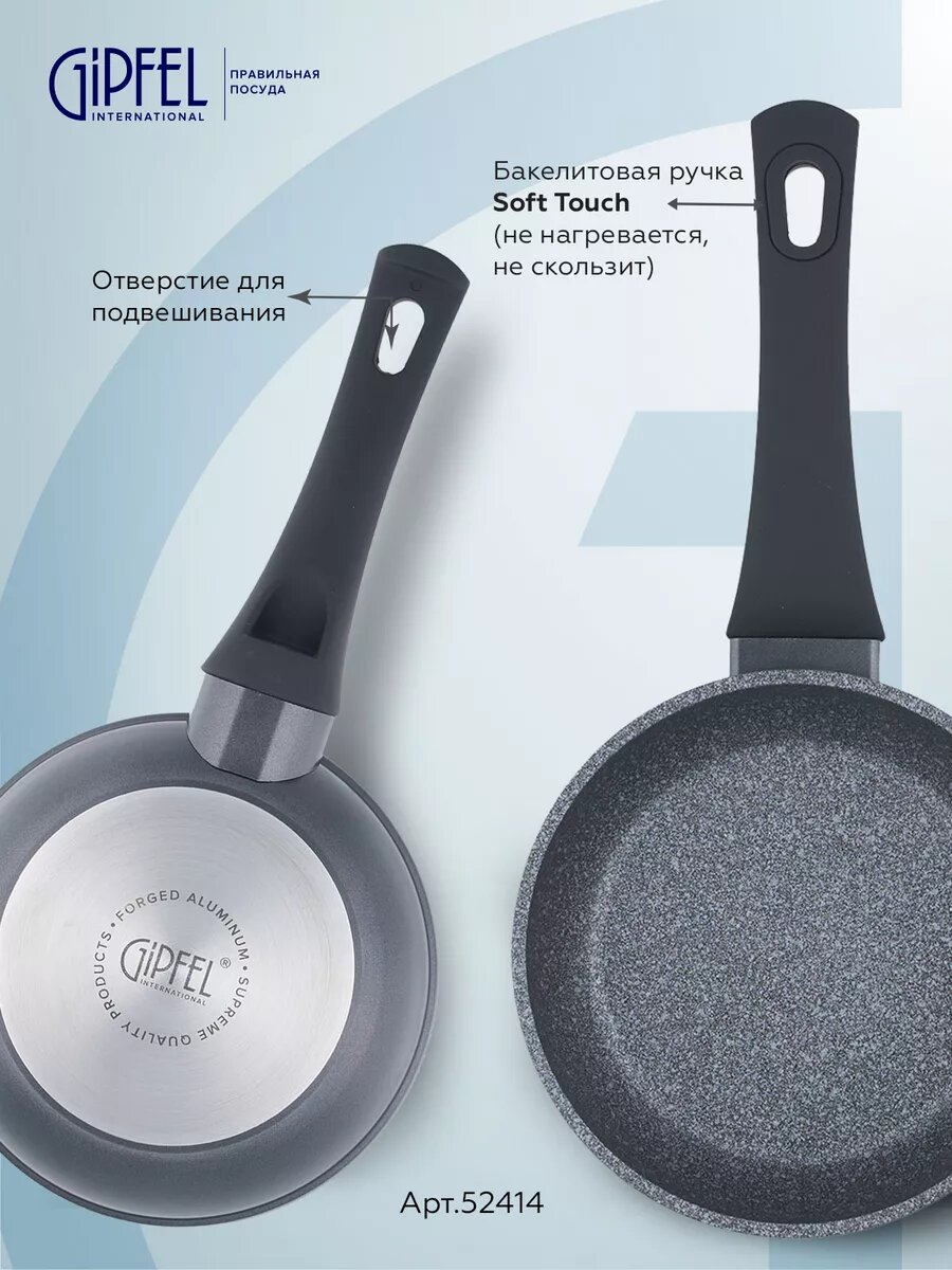 Алюминиевая сковорода Gipfel Optima 52414 18 см черный/серый интересное: