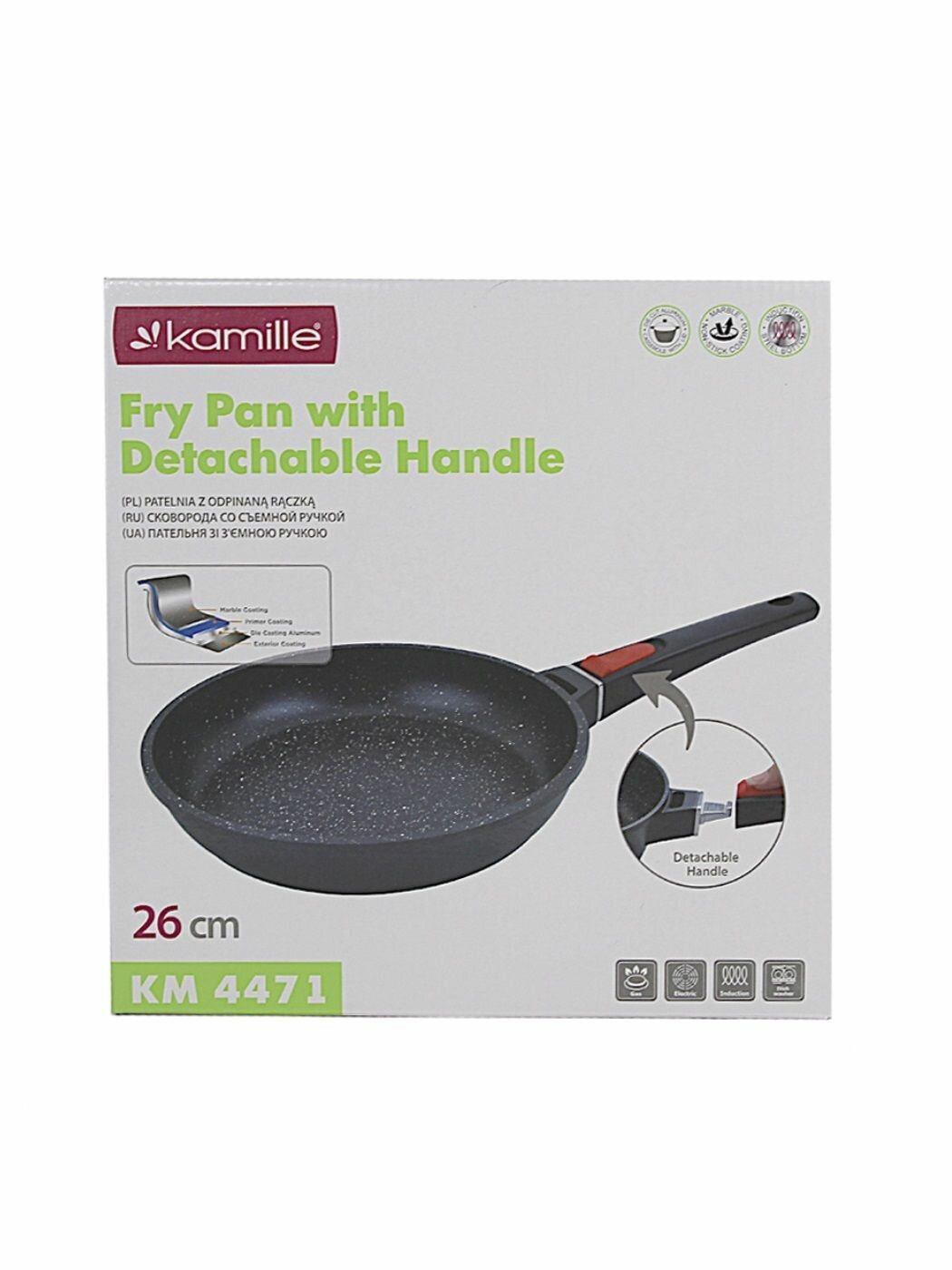 Сковорода 26 см со съемной ручкой из алюминия с антипригарным покрытием интересное:
