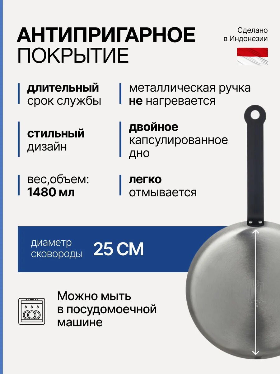 Сковорода с антипригарным покрытием, углерод. сталь, d24см