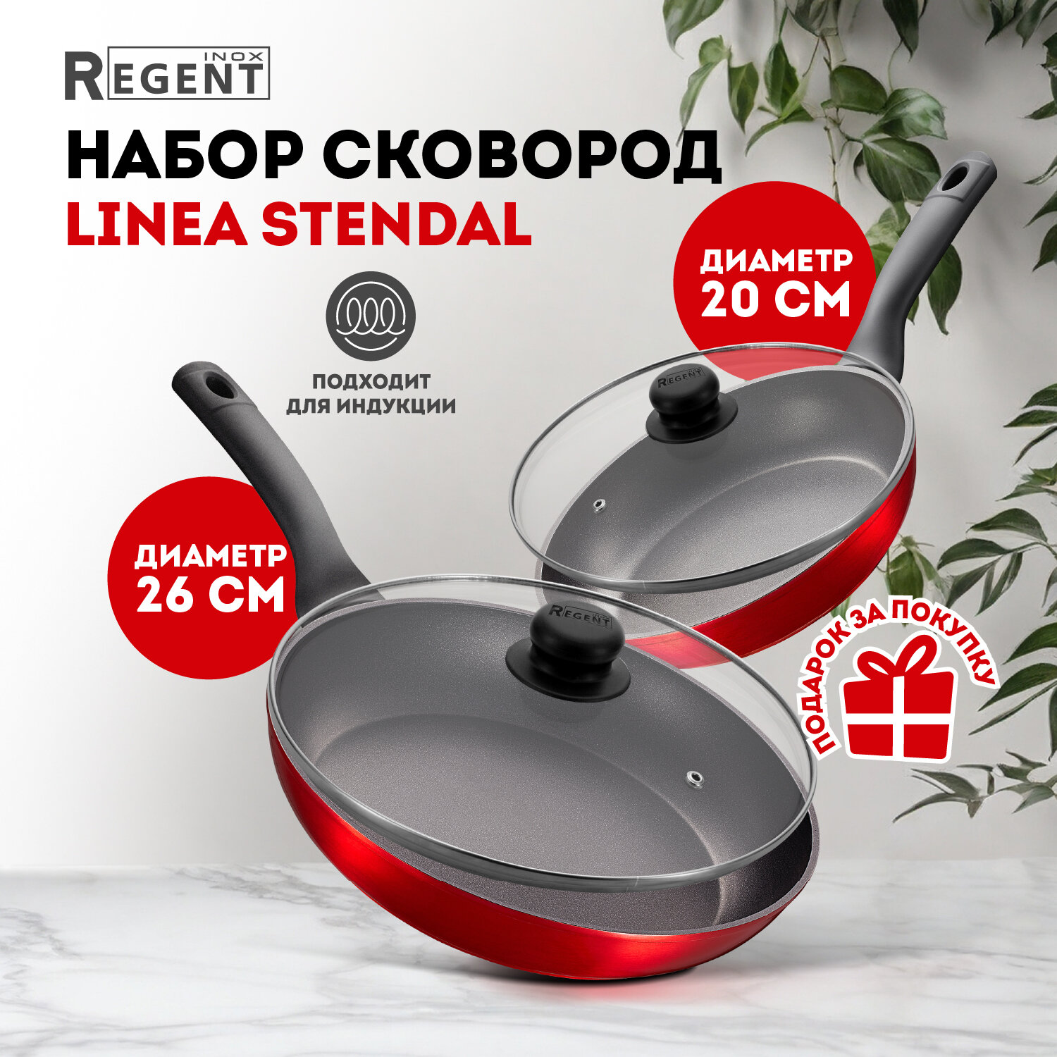 Набор сковородок с крышками 20 см, 26 см для индукционной плиты Regent inox Stendal интересное: