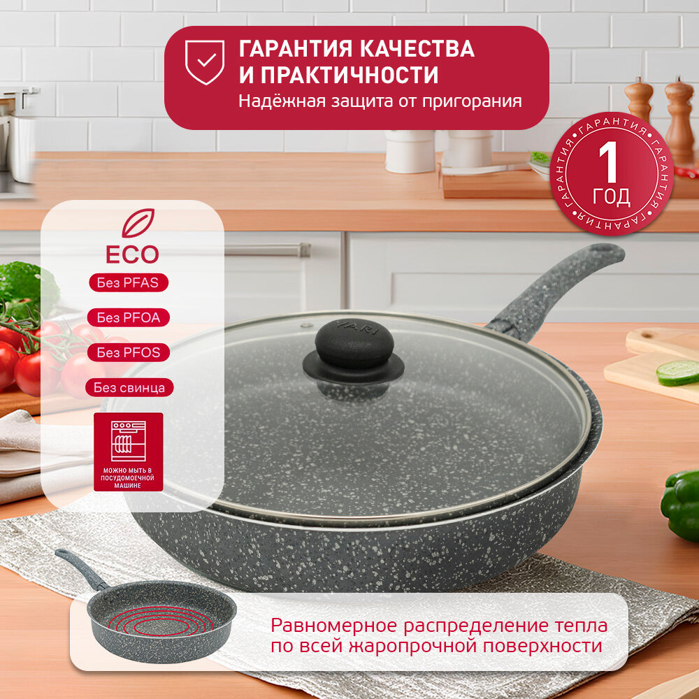 Сотейник высокий борт штампованный серый гранит, с крышкой, 28см интересное: