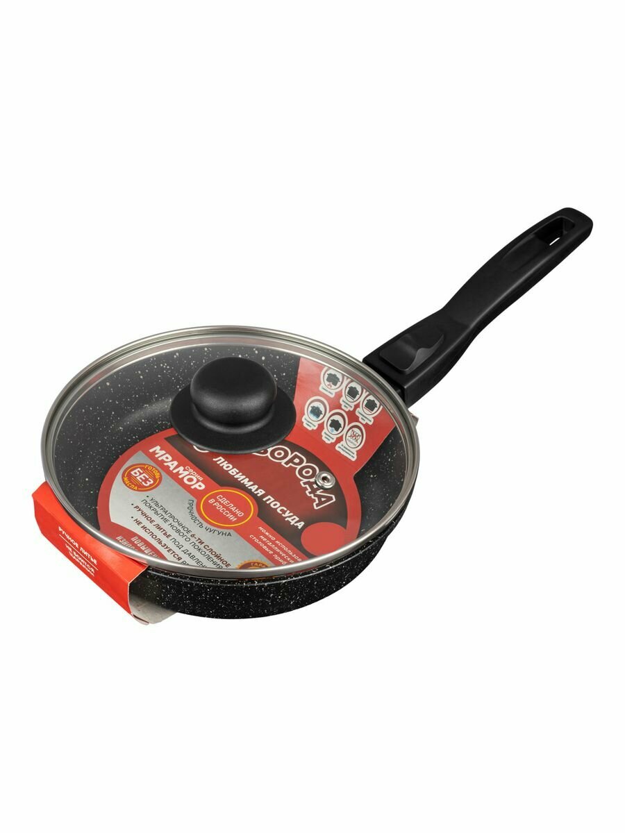 Сковорода мраморная литая 18 см с крышкой , со съемной ручкой интересное: