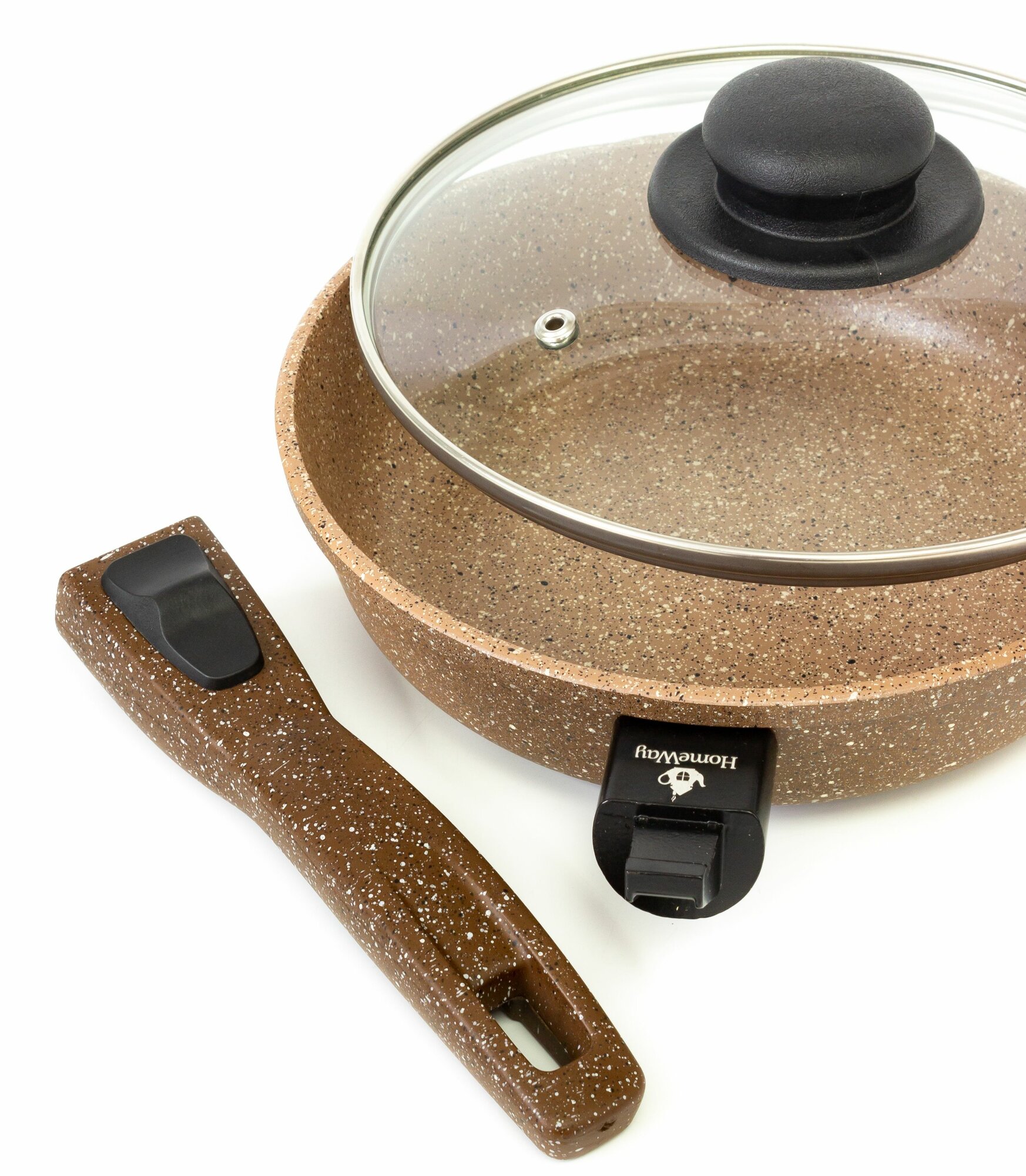 Сковорода 28 см с антипригарным гранитным покрытием мокко с крышкой, со съемной ручкой