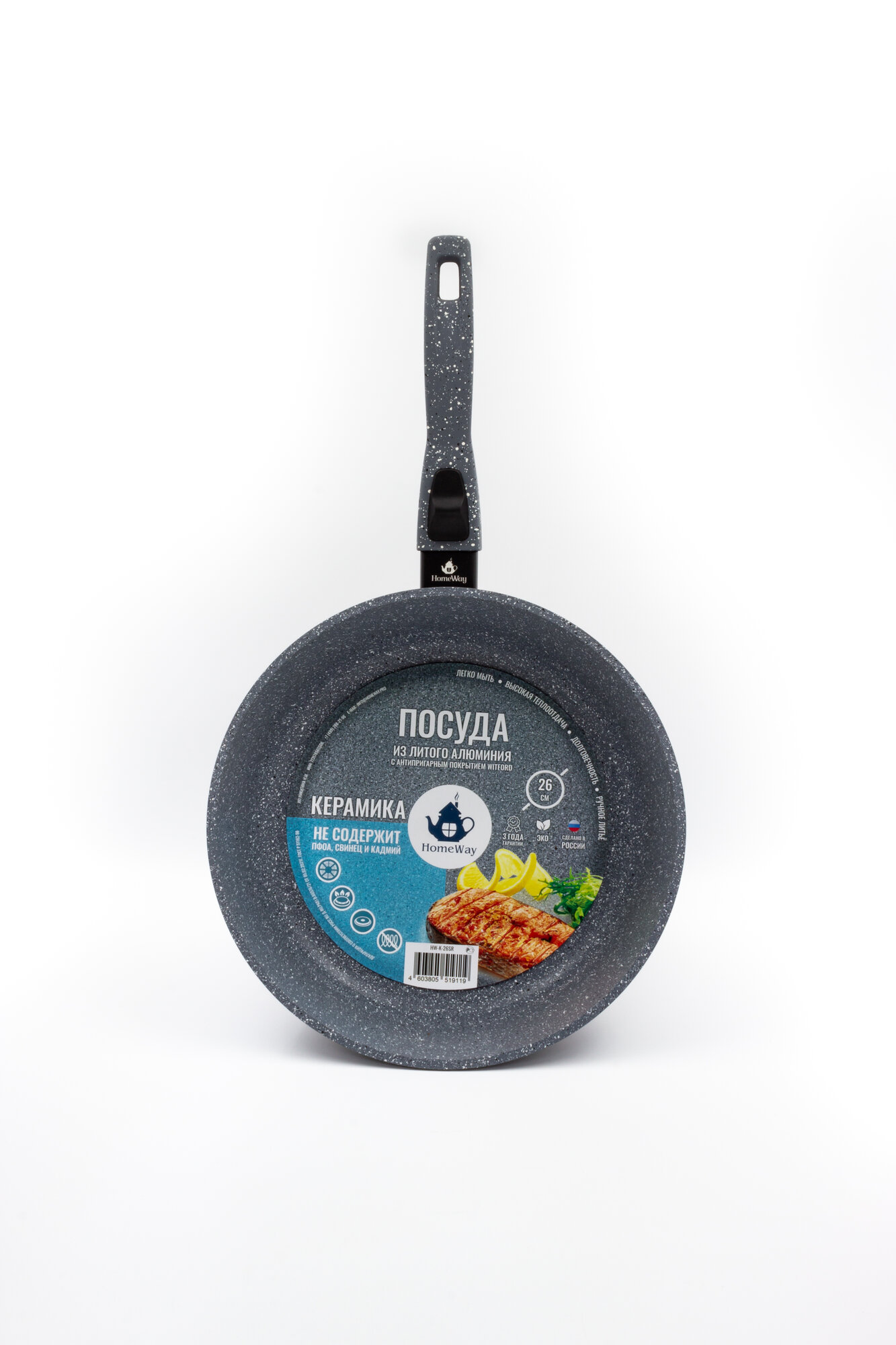 Купить Сковорода литая серии керамика с крышкой и съемной ручкой, 26 см, HomeWay