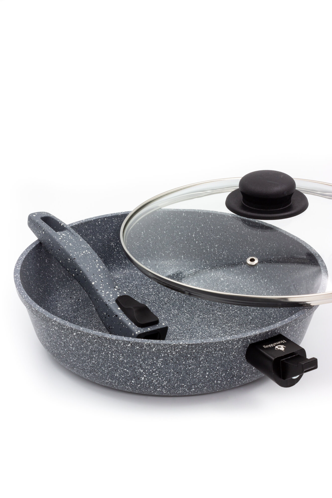Сковорода с антипригарным гранитным покрытием с крышкой, со съемной ручкой