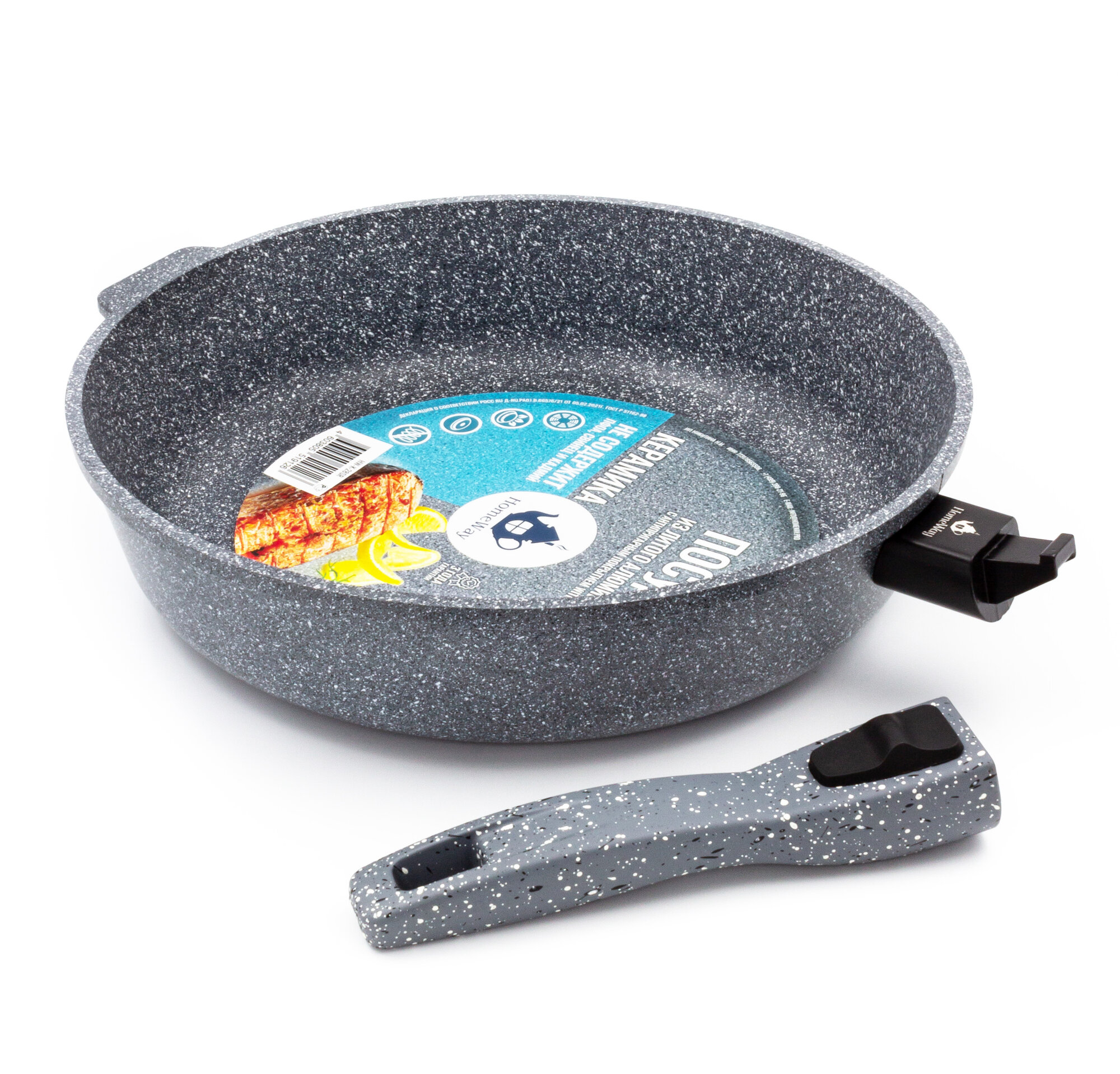 Сковорода литая серии керамика с крышкой и съемной ручкой, 26 см, HomeWay