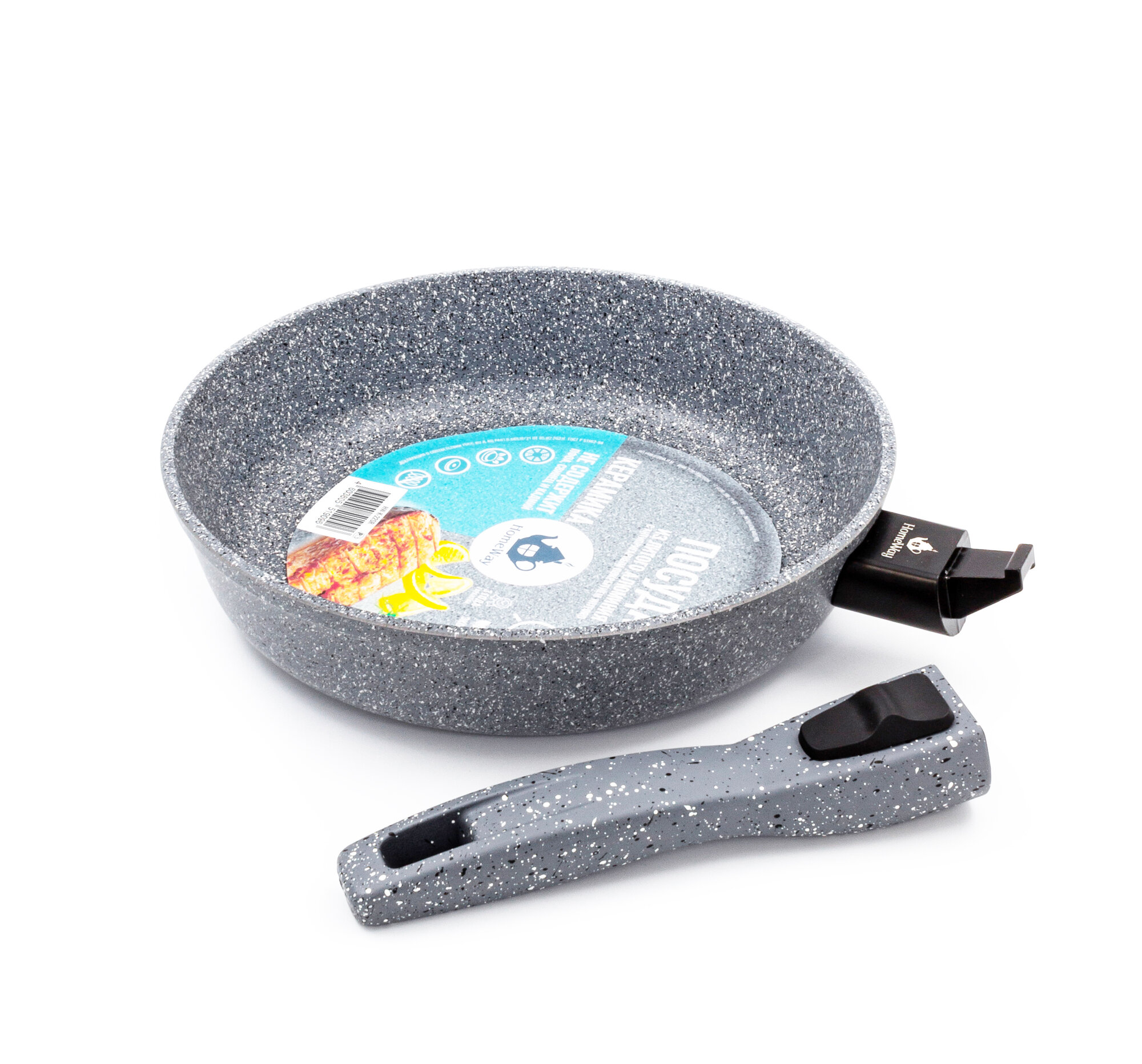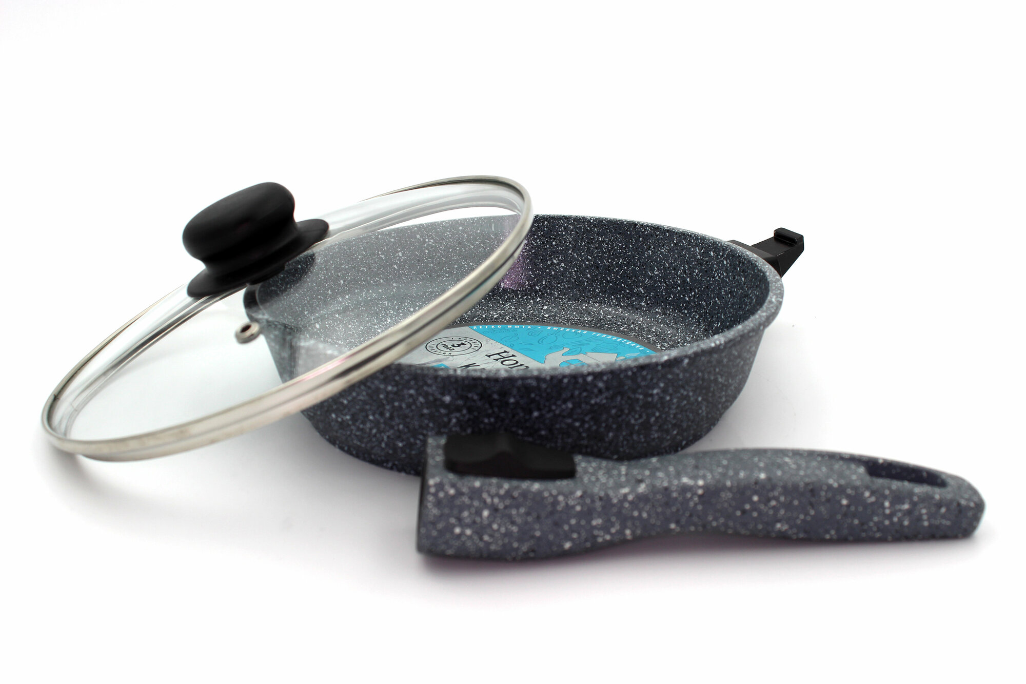 Сковорода с антипригарным гранитным покрытием с крышкой, со съемной ручкой