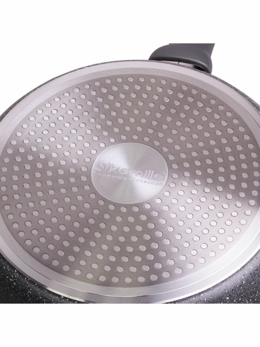 Купить Сотейник 28 см. из литого алюминия Kamille KM-4295GR с мраморным покрытием (28 см. / серый)