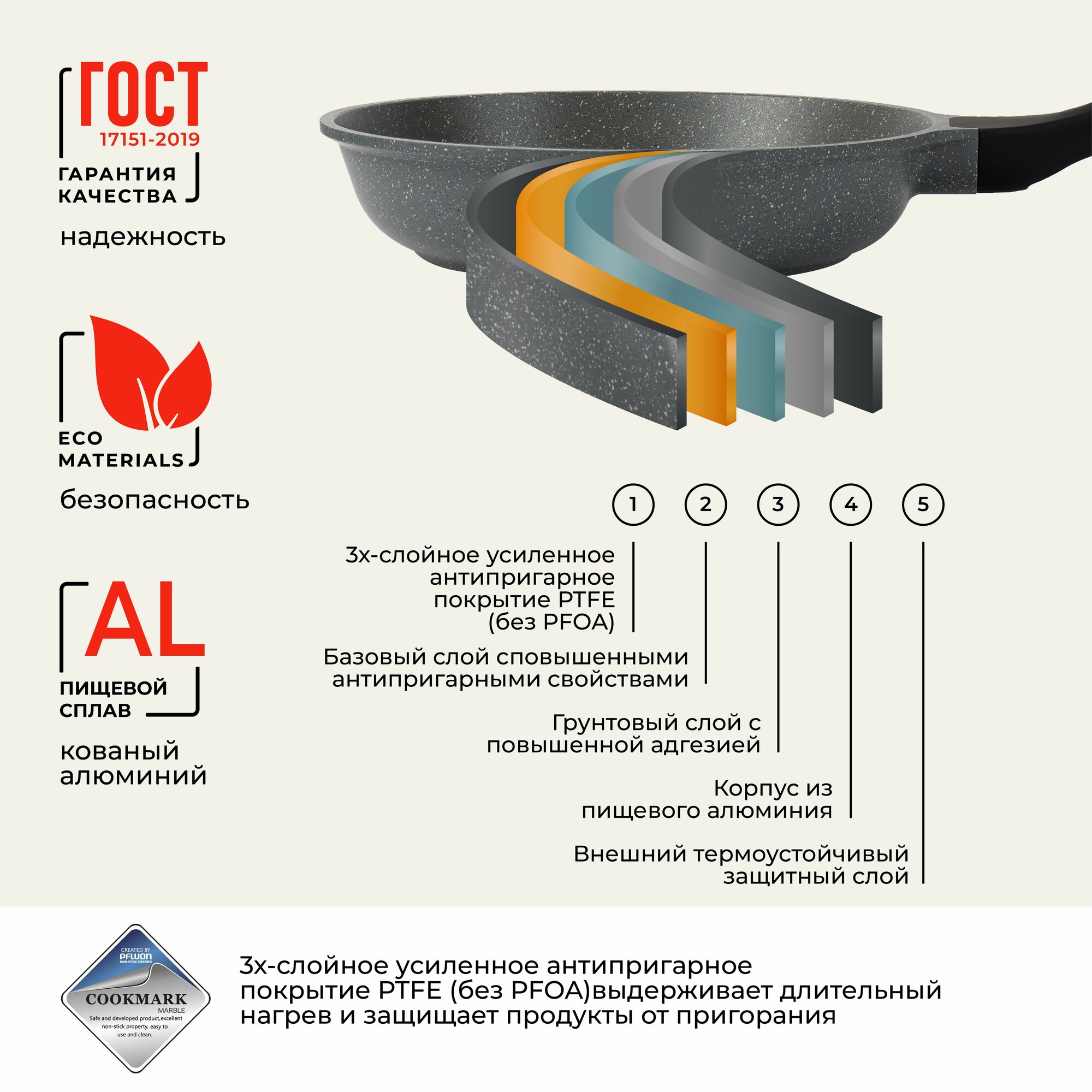 Сковорода индукционная 26 см Unifico Ispirato quarzo (серый камень) интересное: