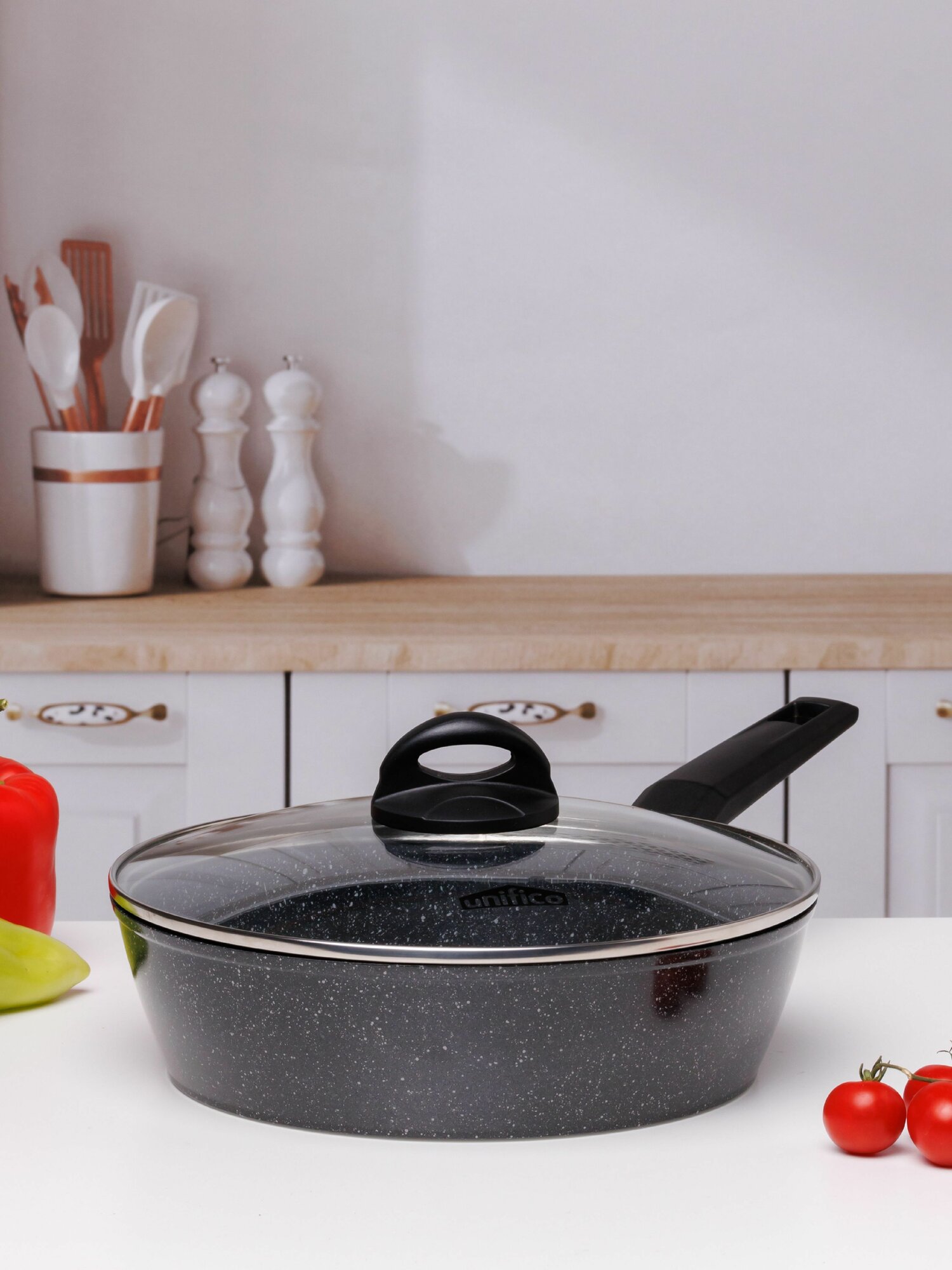 Сковорода с крышкой глубокая 24 см (индукция) UNIFICO Canone Nero (широкое дно)