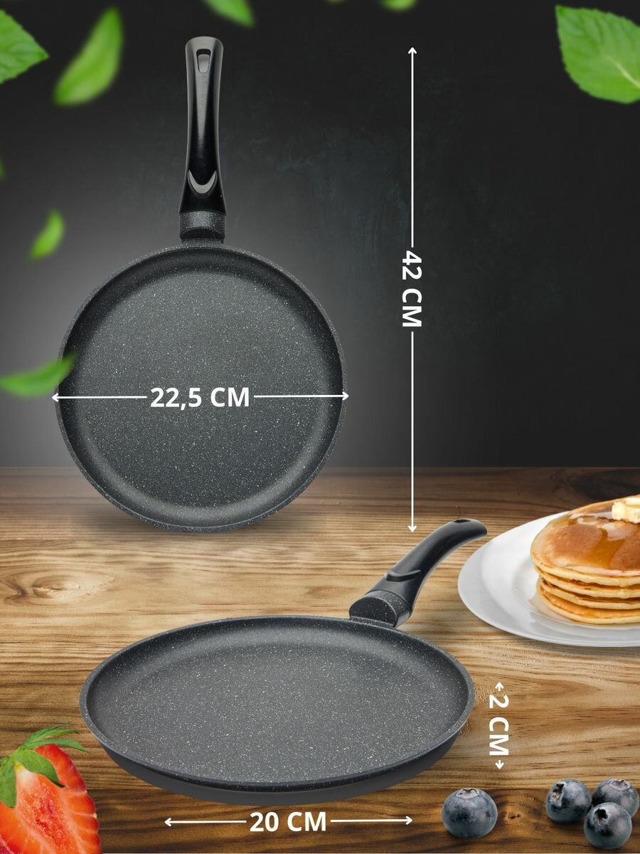 Сковорода блинная, блинница 22см "Премьер" с антипригарным покрытием Гранит, ручка несъемная, низкие борта интересное: