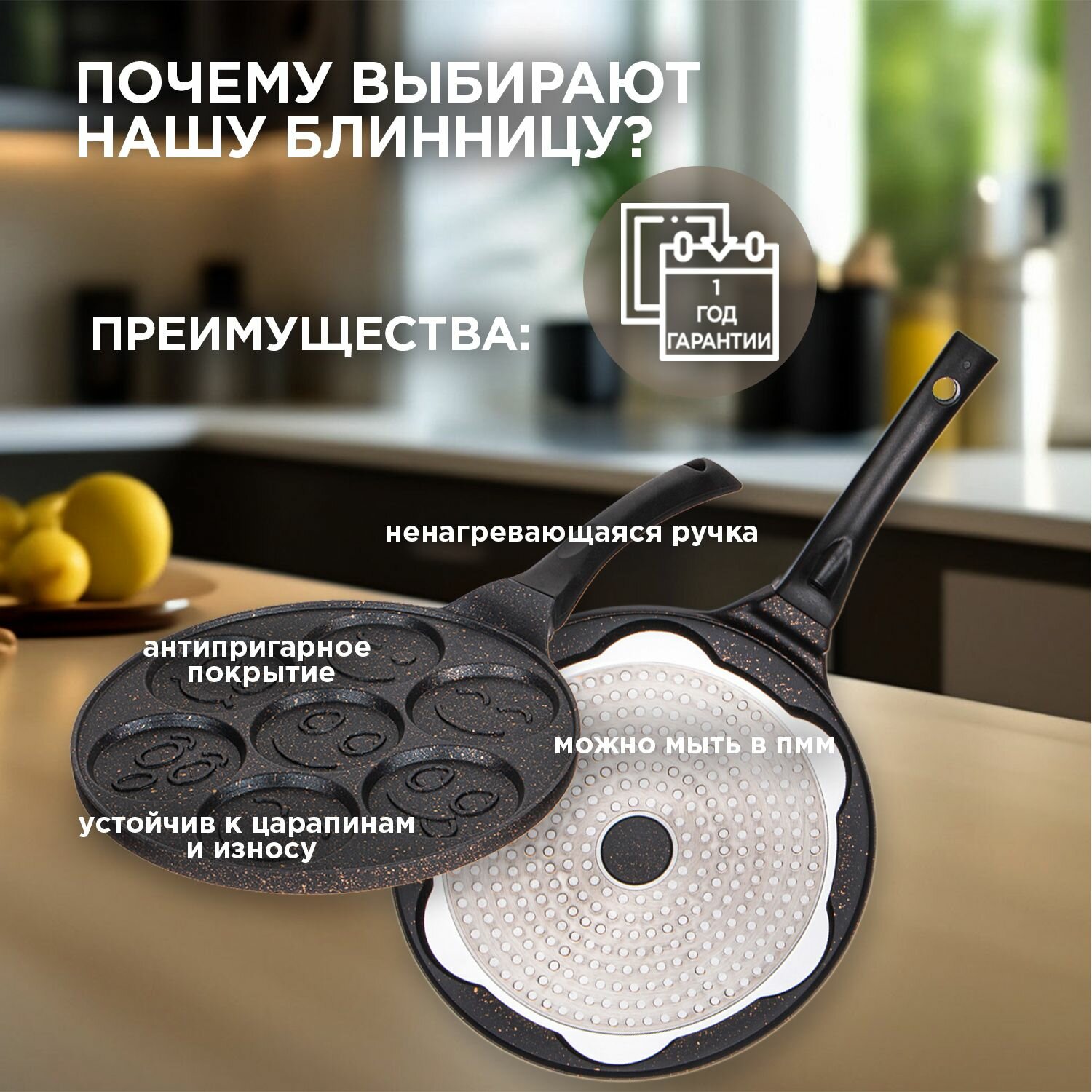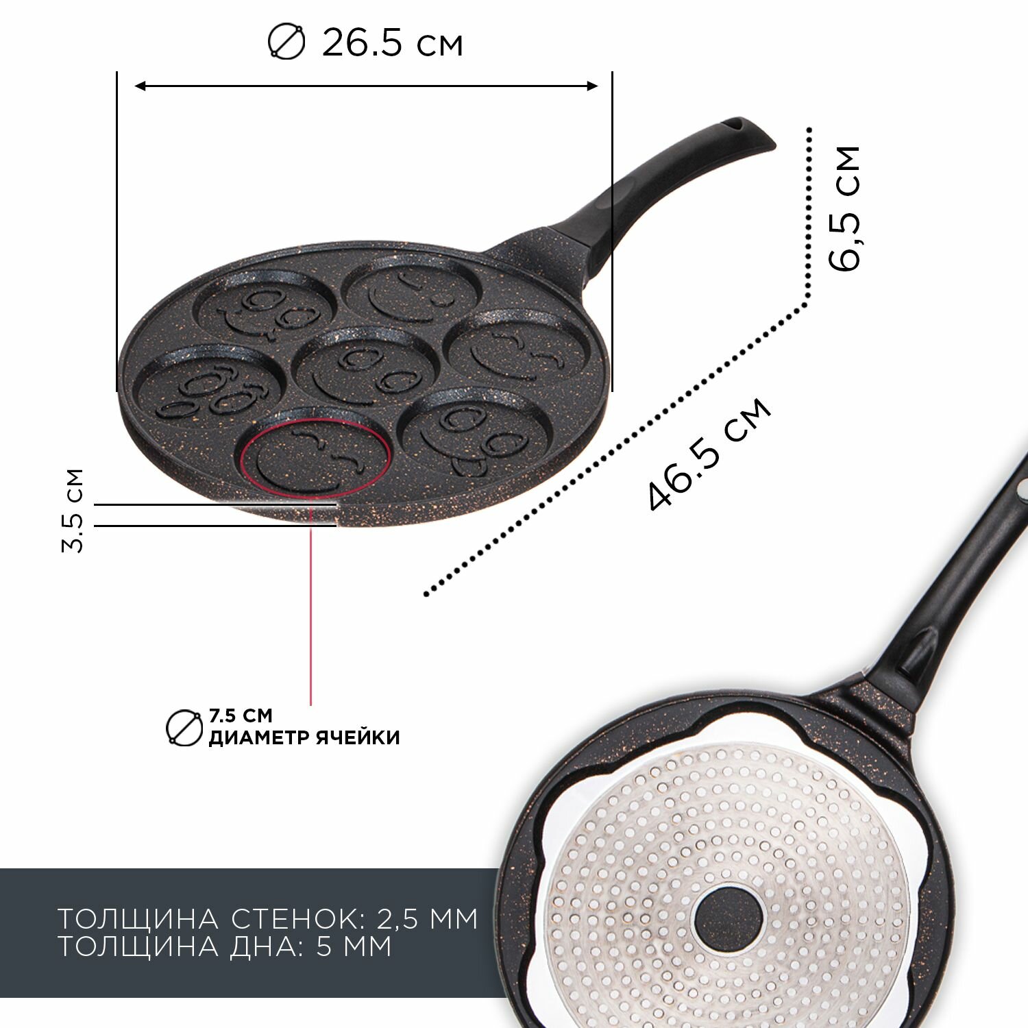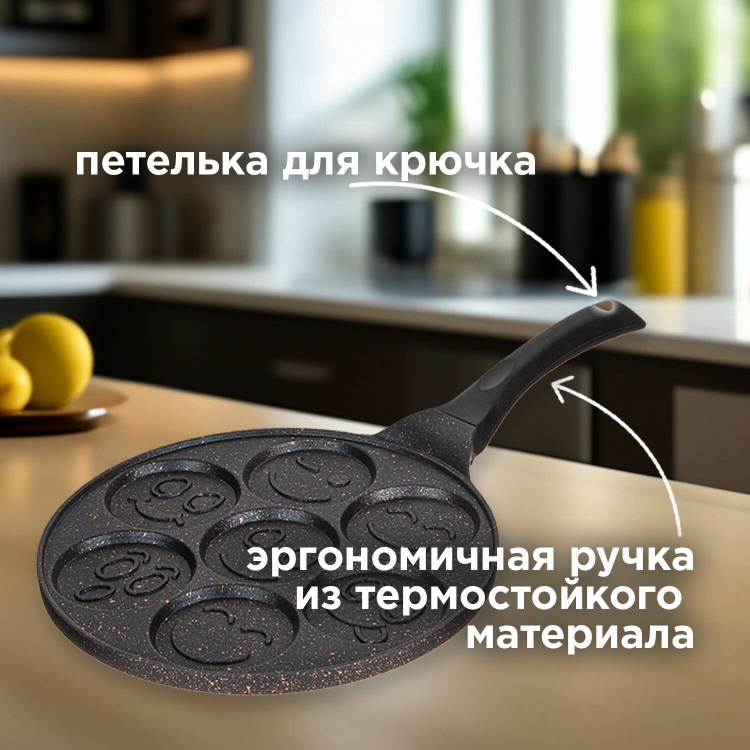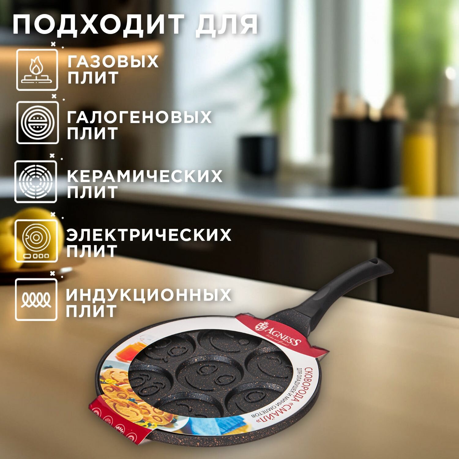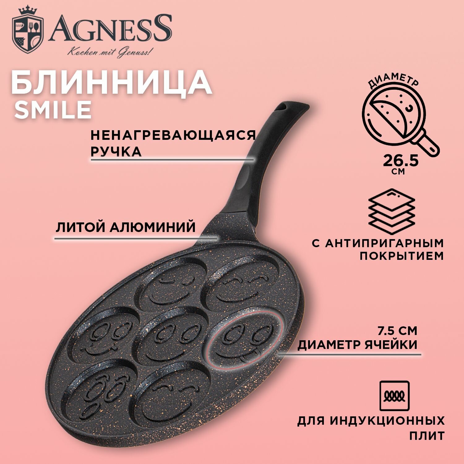 Сковорода блинная Agness "Смайл", для оладий, с антипригарным мраморным покрытием, диаметр 26.5 см, индукционное дно интересное: