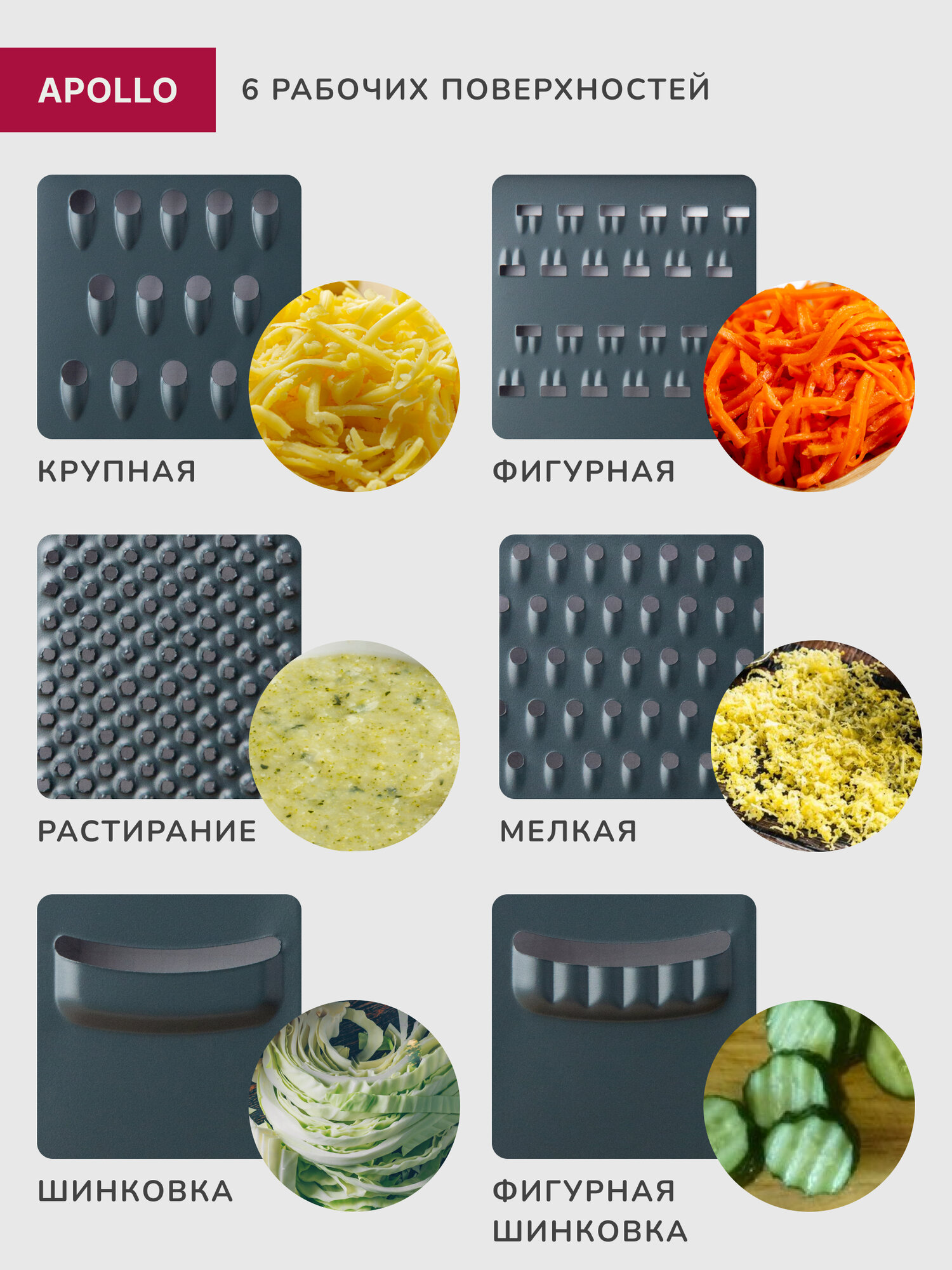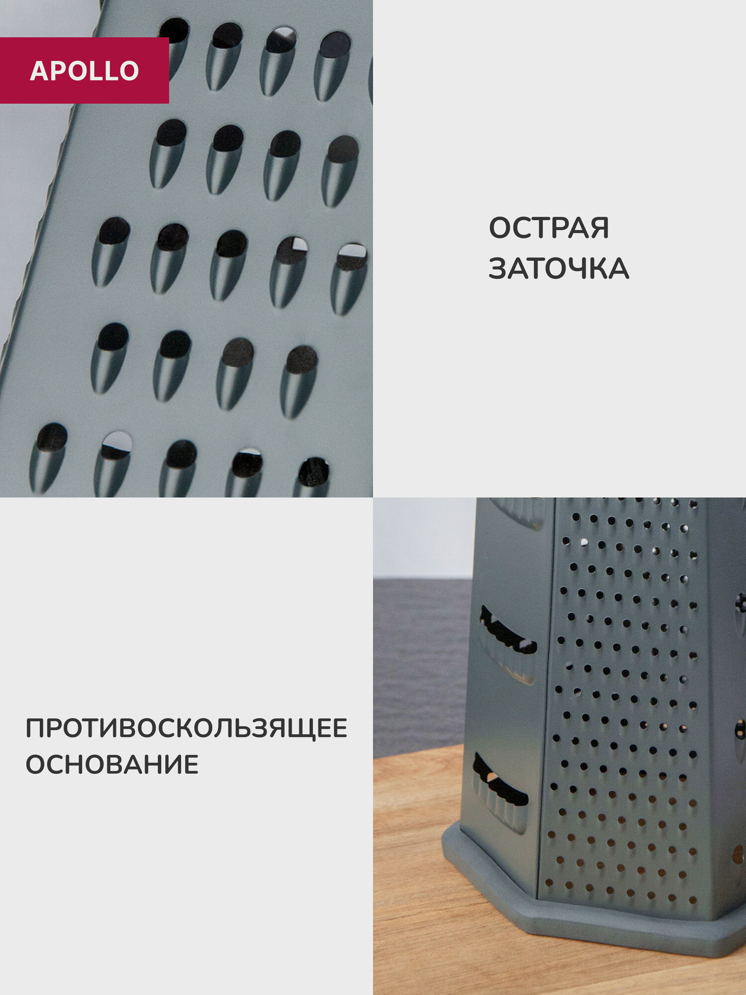 Терка Apollo "Grande", ручная, нержавеющая сталь, нескользящее основание, 6 граней интересное: