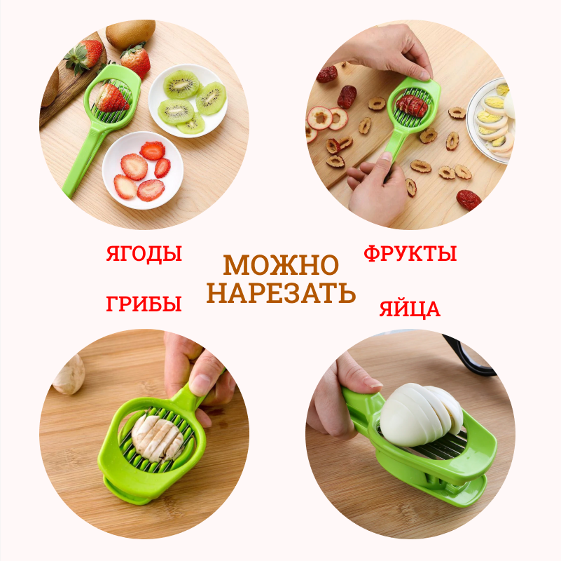 Яйцерезка с подложкой-фиксатором салатовая J-281 / Ручной измельчитель для яиц, ягод, фруктов, овощей интересное: