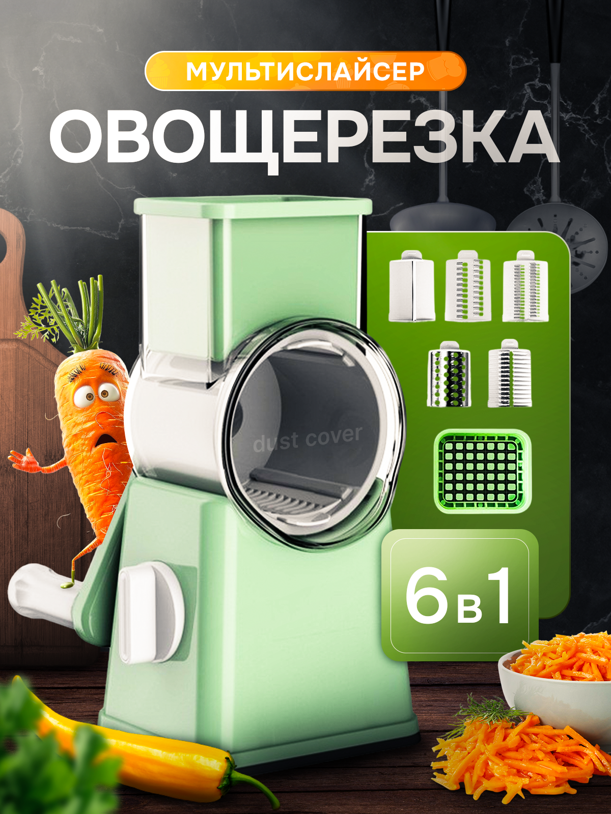 Купить Многофункциональная ручная овощерезка, терка для овощей, 6 насадок