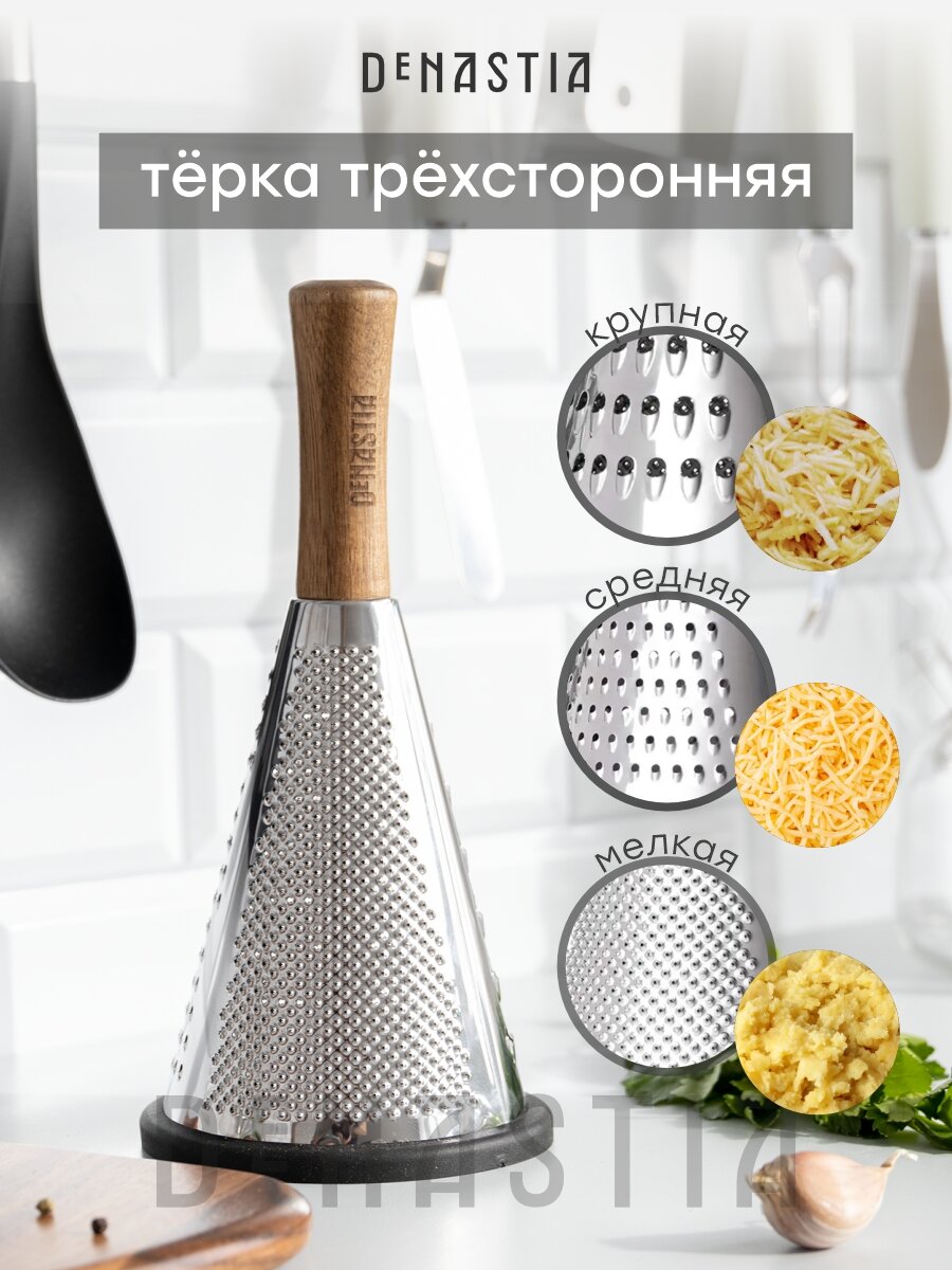 Терка из нержавеющей стали DeNASTIA 11,3x24см, деревянная ручка интересное: