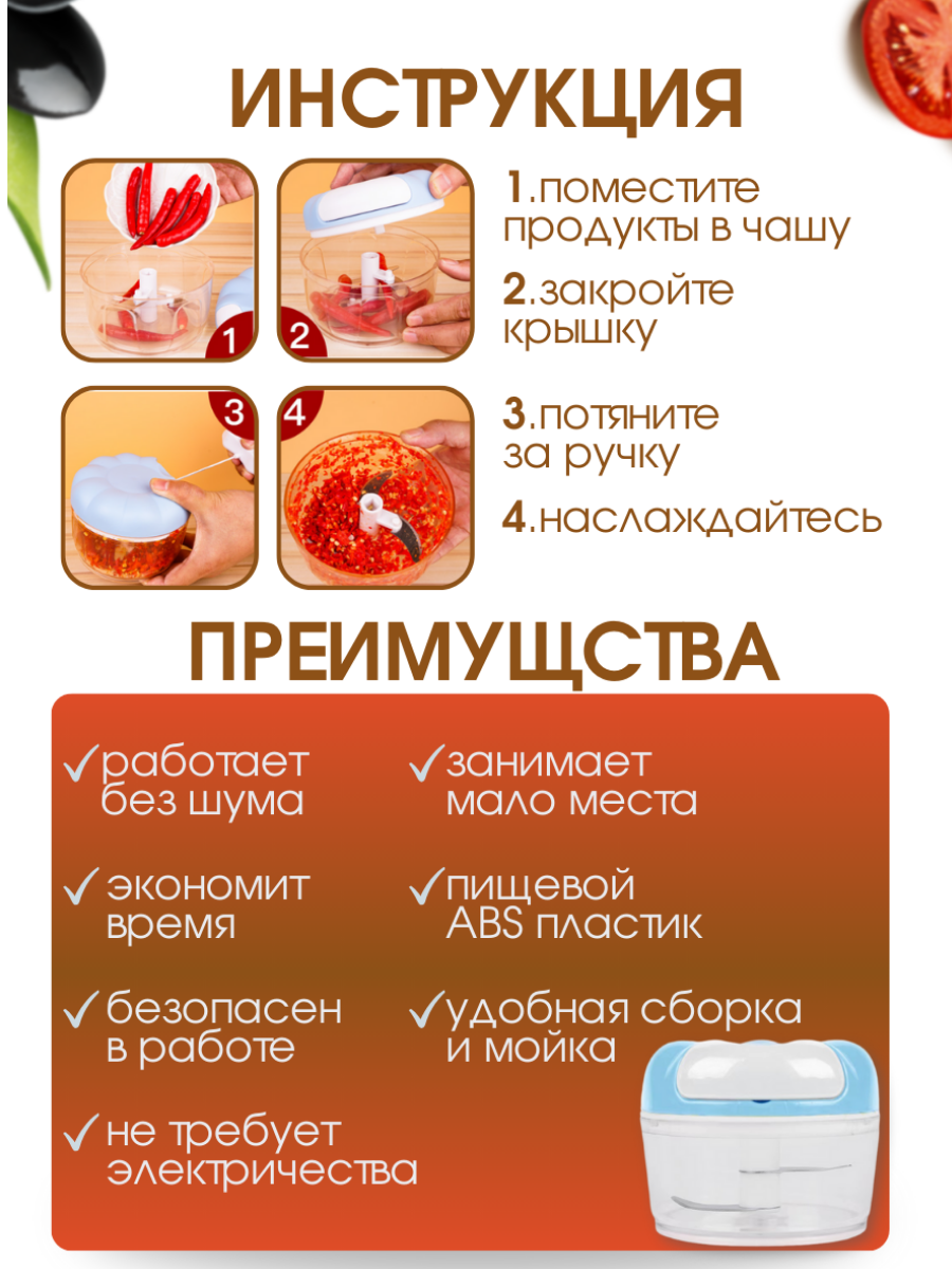 Измельчитель ручной, для фруктов, овощей, зелени, 10 см, голубой интересное: