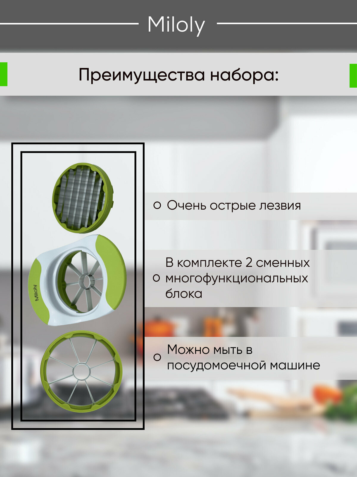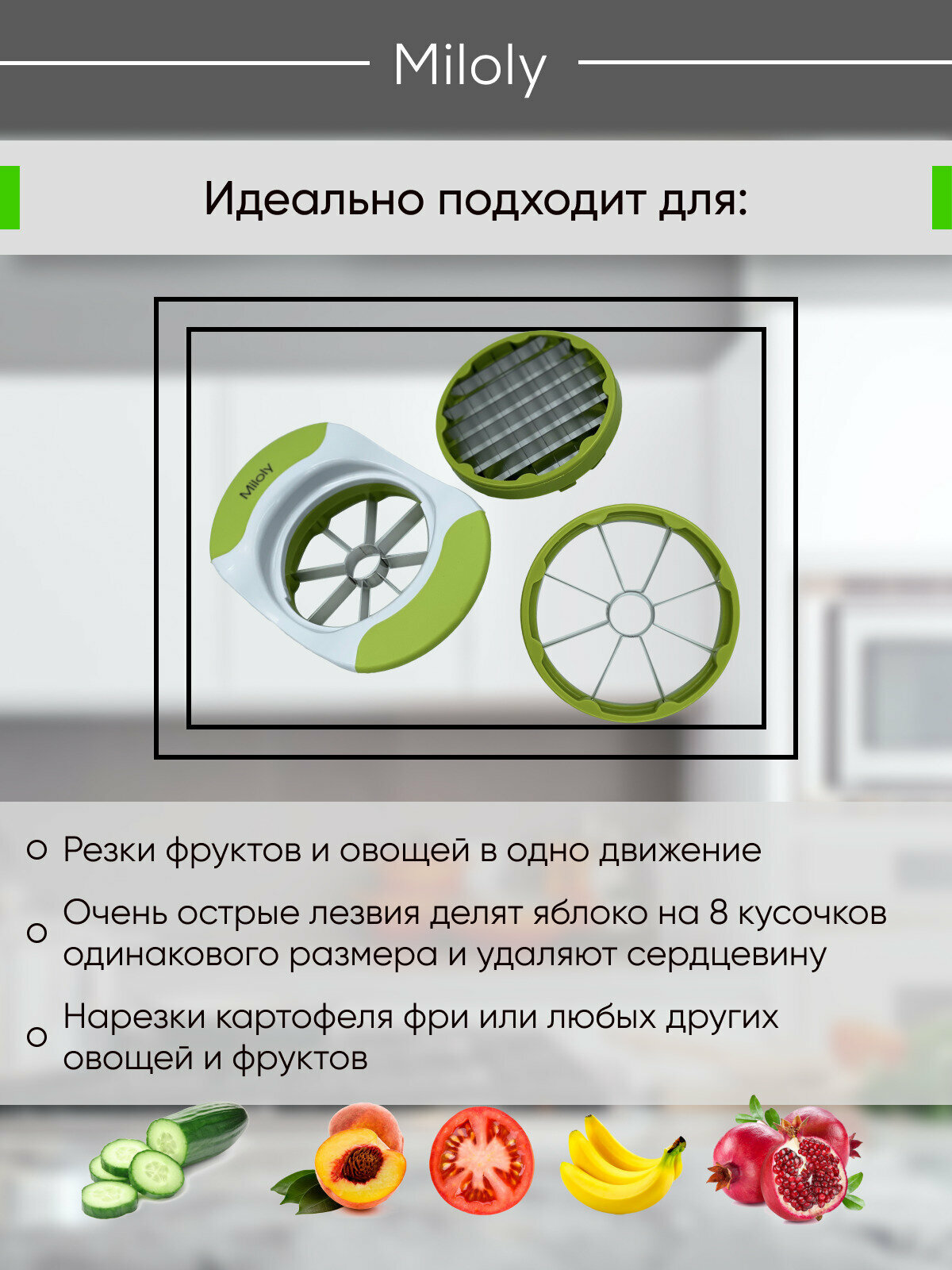 Измельчитель для яблок, яблокорезка, овощерезка, картофелерезка, яйцерезка Miloly интересное: