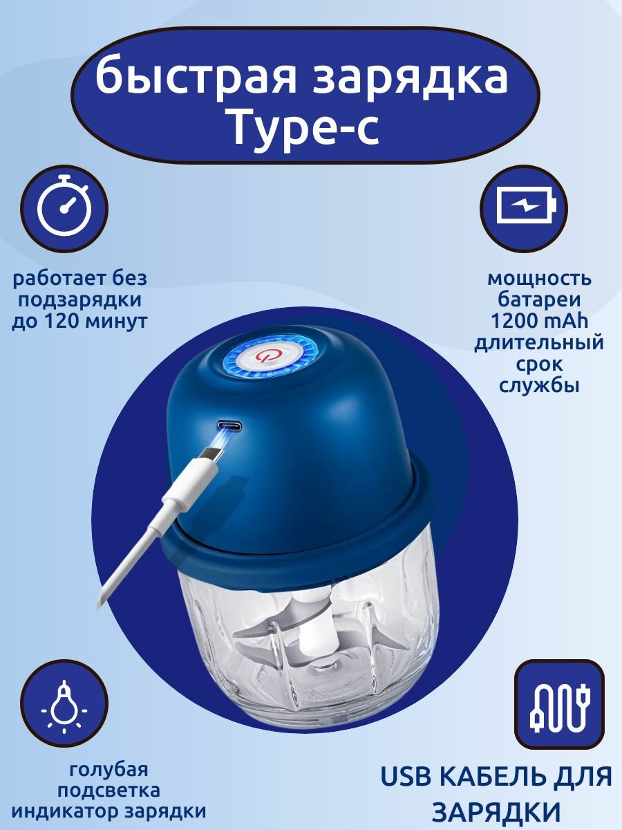 Измельчитель беспроводной портативный блендер, для чеснока, фарша, мяса, универсальный 350 мл. интересное: