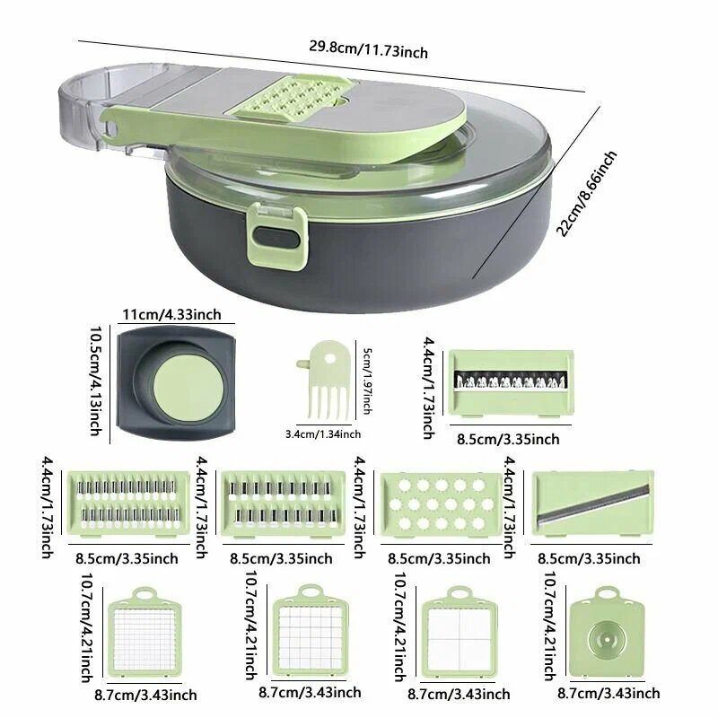 Купить Овощерезка многофункциональная "Терка" 9в1, ручная, салатовая, 29.5х21.8х9 см