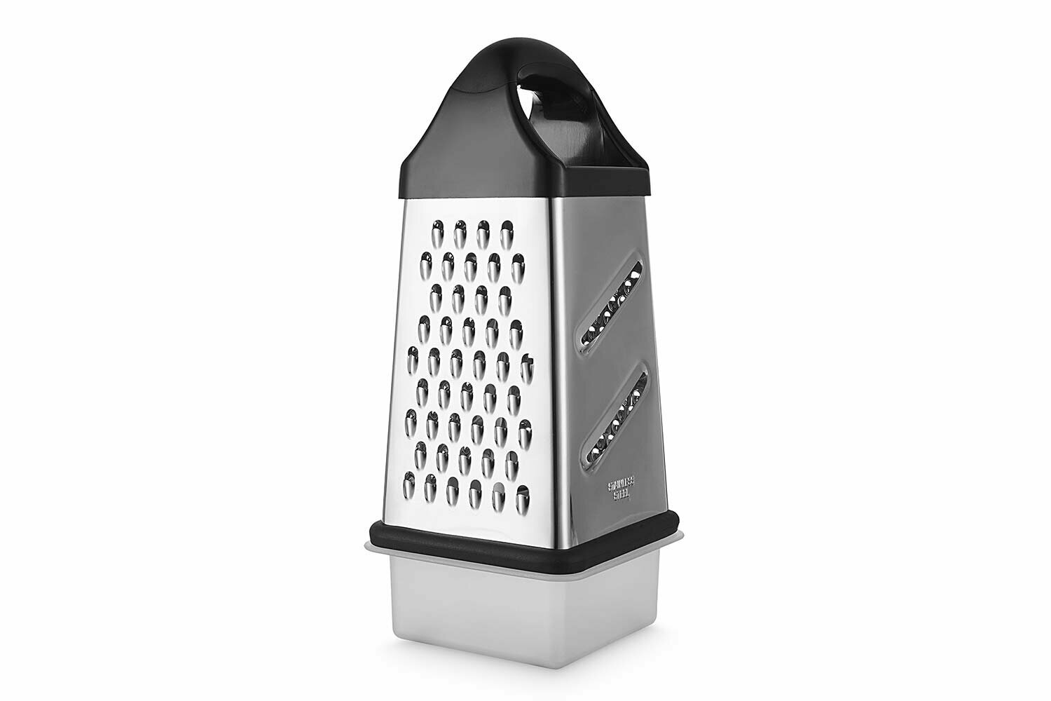 Купить Тёрка 4-гранная с контейнером BERKRAFT Sarah, 11x22x11 см, цвет металл, чёрный