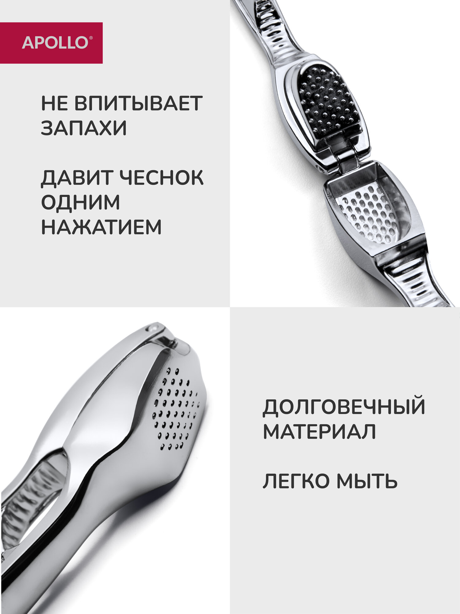 Пресс для чеснока Apollo "Solar", цинковый сплав, антибактериальное покрытие интересное:
