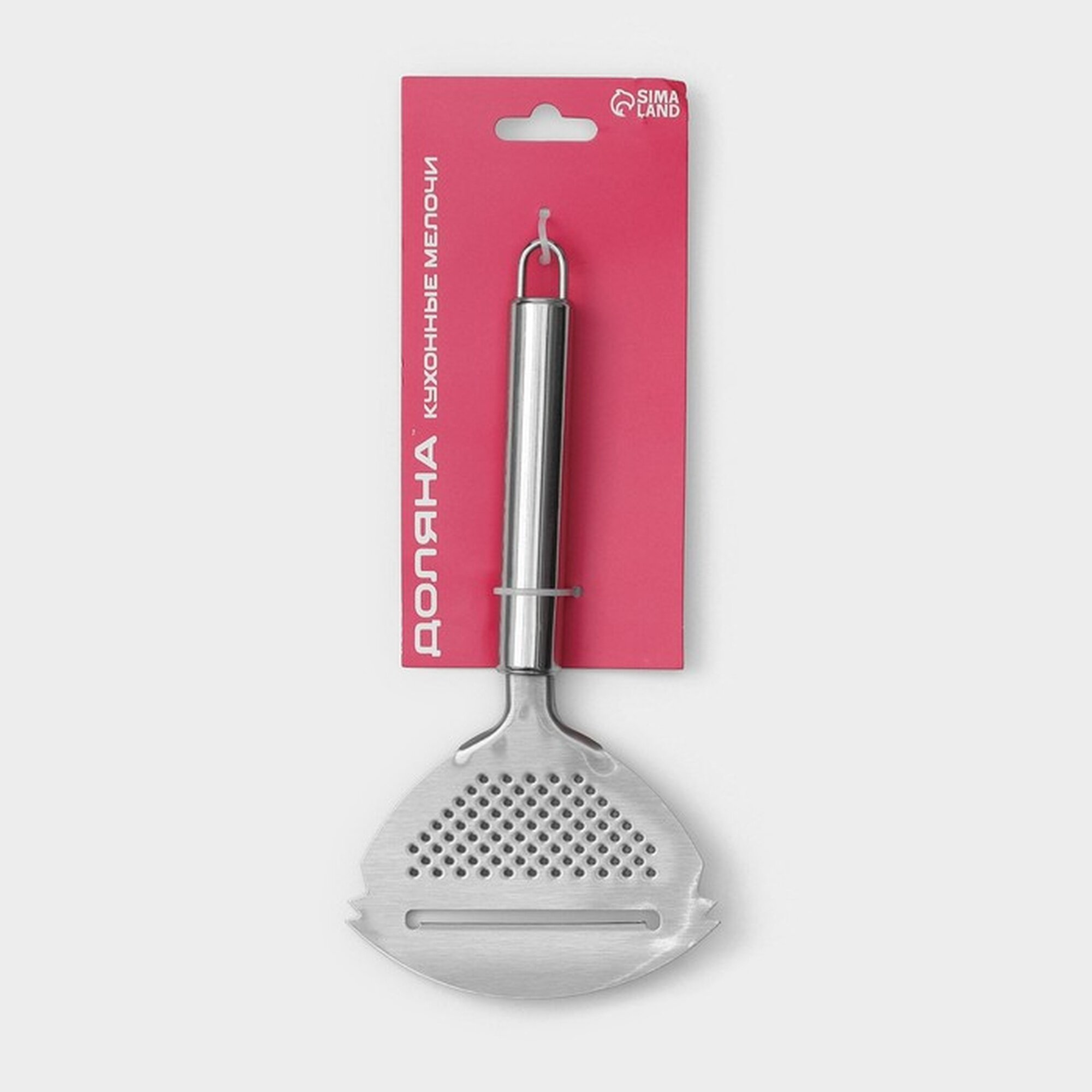 Тёрка мелкая Доляна «Помощник», 19×5 см, с ручкой, цвет серебряный