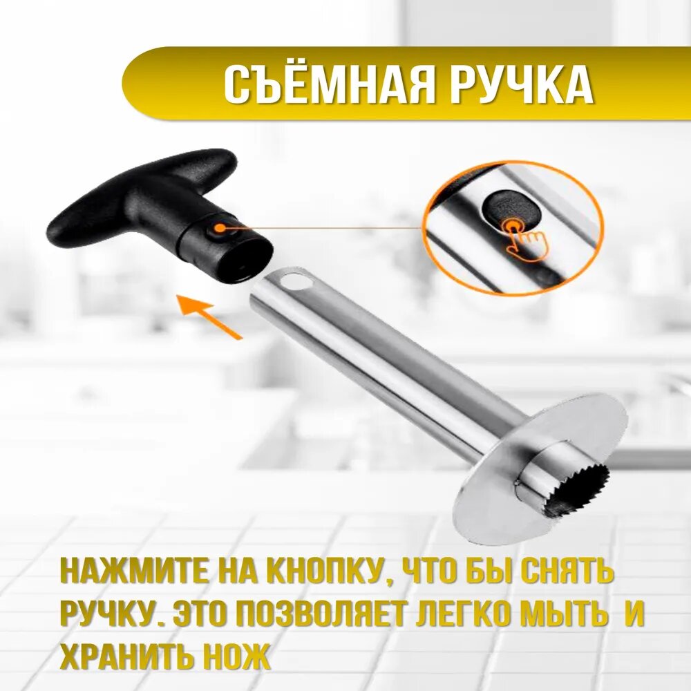 Нож для нарезки ананасов Pineapple Slicer, нержавеющая сталь, пластик, серебристый, 9x20 см интересное:
