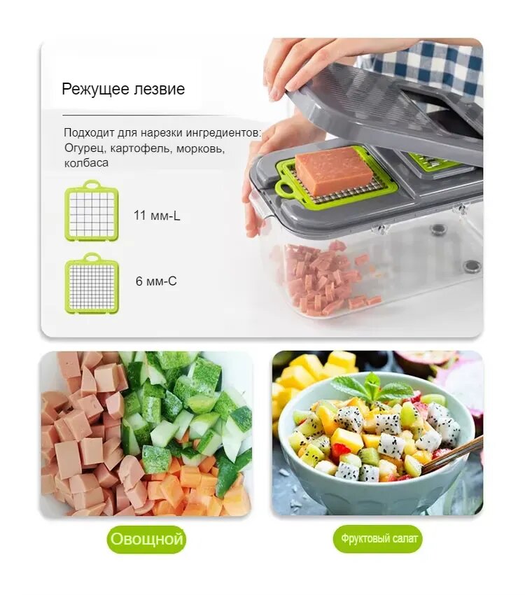 Многофункциональная овощерезка ручная Измельчитель овощей и фруктов Слайсер для нарезки с контейнером, 22 в 1 интересное: