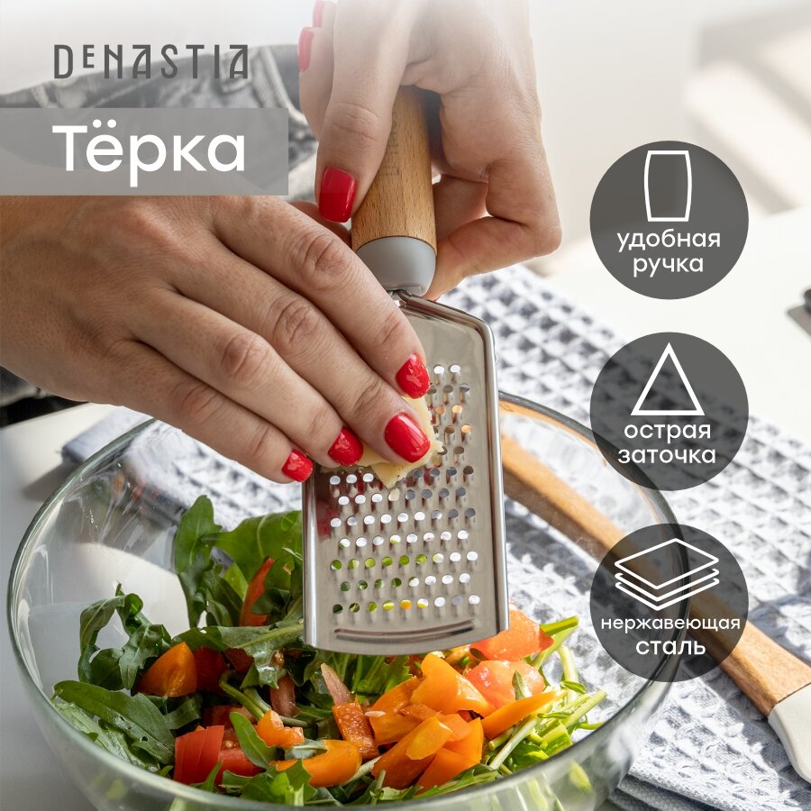 Терка из нержавеющей стали DeNASTIA на деревянной ручке из бука 25x6см, цвет серый интересное: