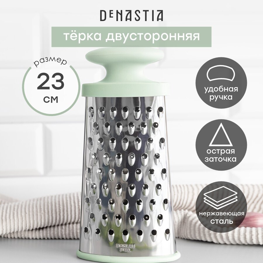 Терка DeNASTIA плоская, M, 24x12x5,5см, нержавеющая сталь, цвет мятный интересное: