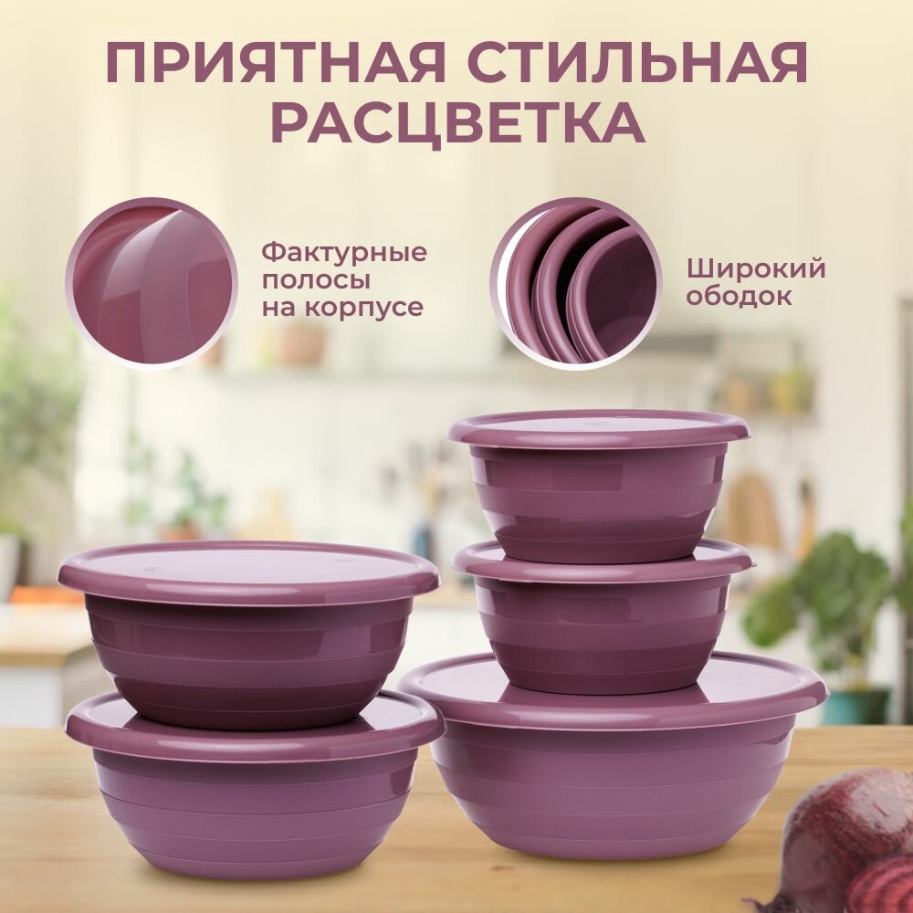 Набор салатников SparkPlast пластиковые с герметичными крышками (1,2л.-2шт) (2,1л.-2шт) (3,2л-1шт) фиолетовые. интересное:
