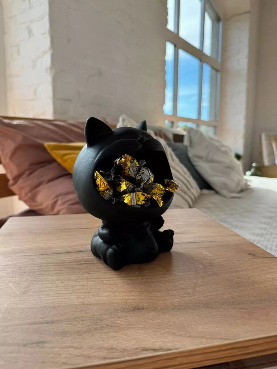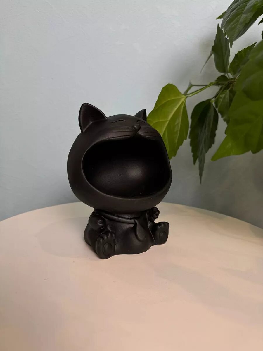 Конфетница "Гипсовый котик" BI BRIGHT IDEA, гипс, 17см, фигурная, чёрная интересное: