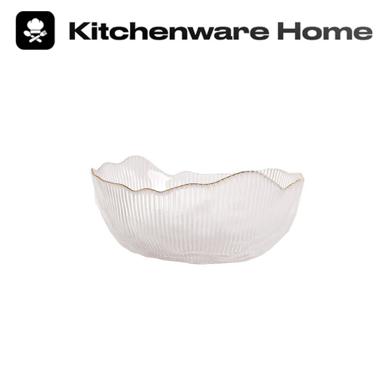 Стеклянный Салатник Nouvelle Frost Strip (в полоску), прозрачный с золотым ободком 1050мл