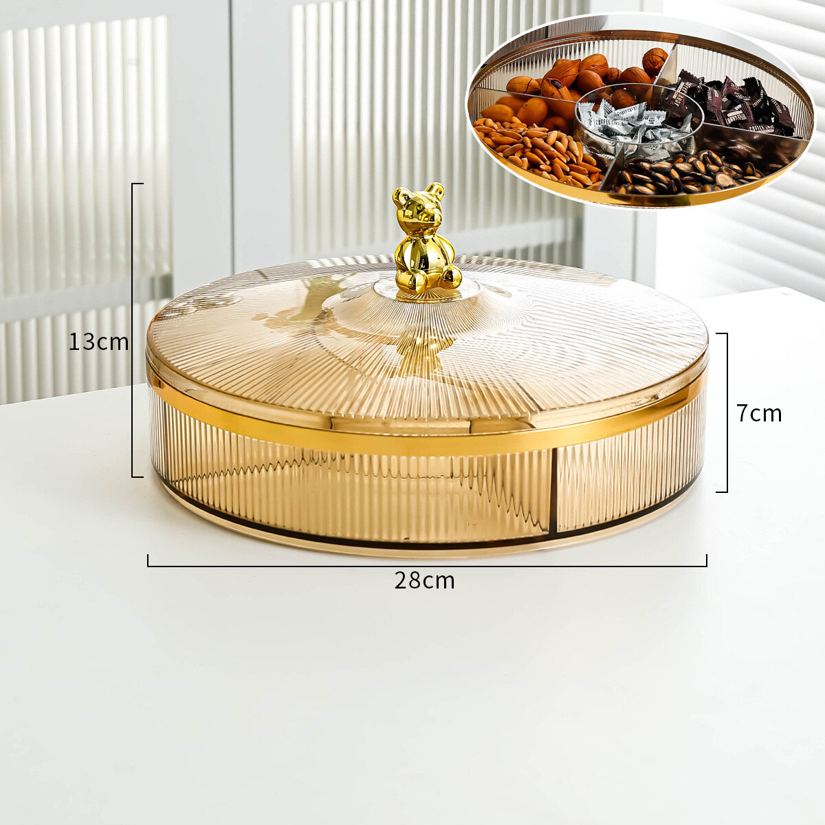 Конфетница/менажница круглая с крышкой, 5 секций, золотистая, 28 см интересное: