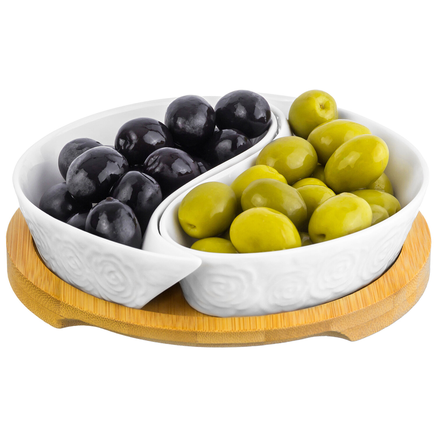 Купить Тарелка под оливки 100 мл 15х15х3,5 см Elan Gallery Инь-Янь розы на деревянной подставке